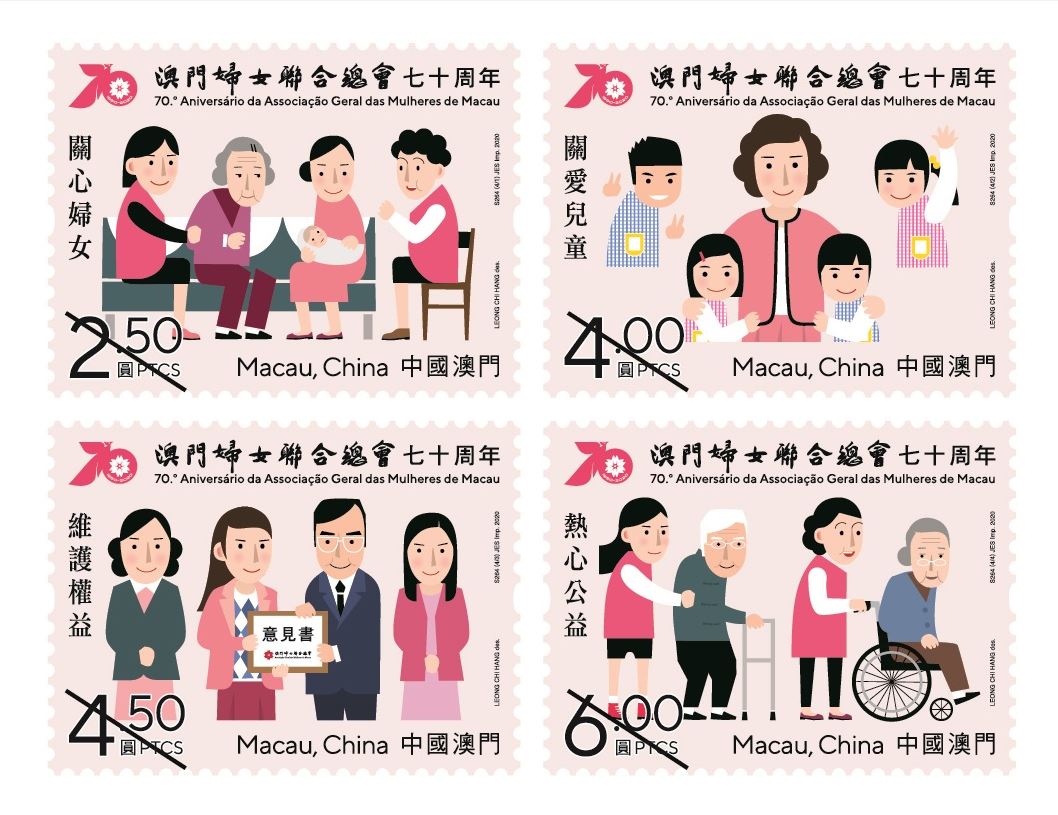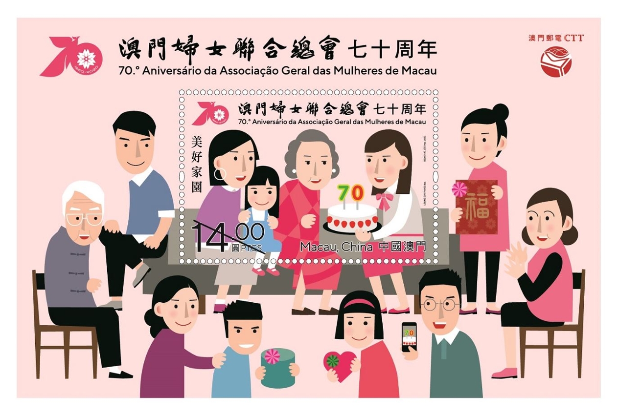 澳门妇女联合总会于1950年成立,是澳门历史最悠久、会员人数最多、最具代表性的妇女组织,会员来自全澳各阶层,是澳门妇女姐妹的大家庭。今年是妇联成立七十周年,邮电局特于二零二零年五月二十一日发行以『澳门妇女联合总会七十周年』为题发行新邮品,以纪念澳门妇幼事业的发展走过七十年的光辉历程。