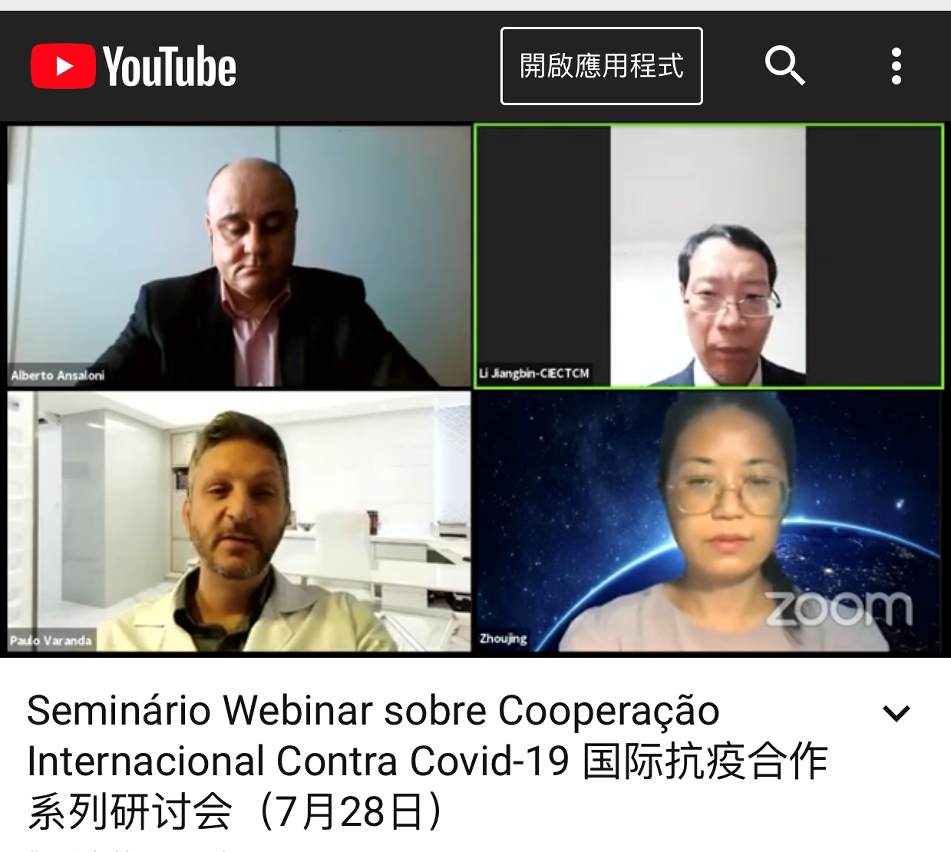 由中国驻巴西大使馆、驻里约总领馆、四川省侨务办公室、米纳斯州政府等单位共同主办的国际抗疫合作系列线上研讨会(第二期)圆满成功举办。中葡论坛(澳门)常设秘书处作为支持单位,继续推动葡语国家、澳门特区政府及相关机构代表参与。第二期系列研讨会于7月14日、21日、28日及8月4日分别以四个主题专场展开,聚焦促进抗疫国际合作、交流一线救治经验、加强传统医学研究、深化经贸协作。系列研讨会通过YouTube、“快手”等社交新媒体平台向全球直播,活动获得社会各界广泛关注。