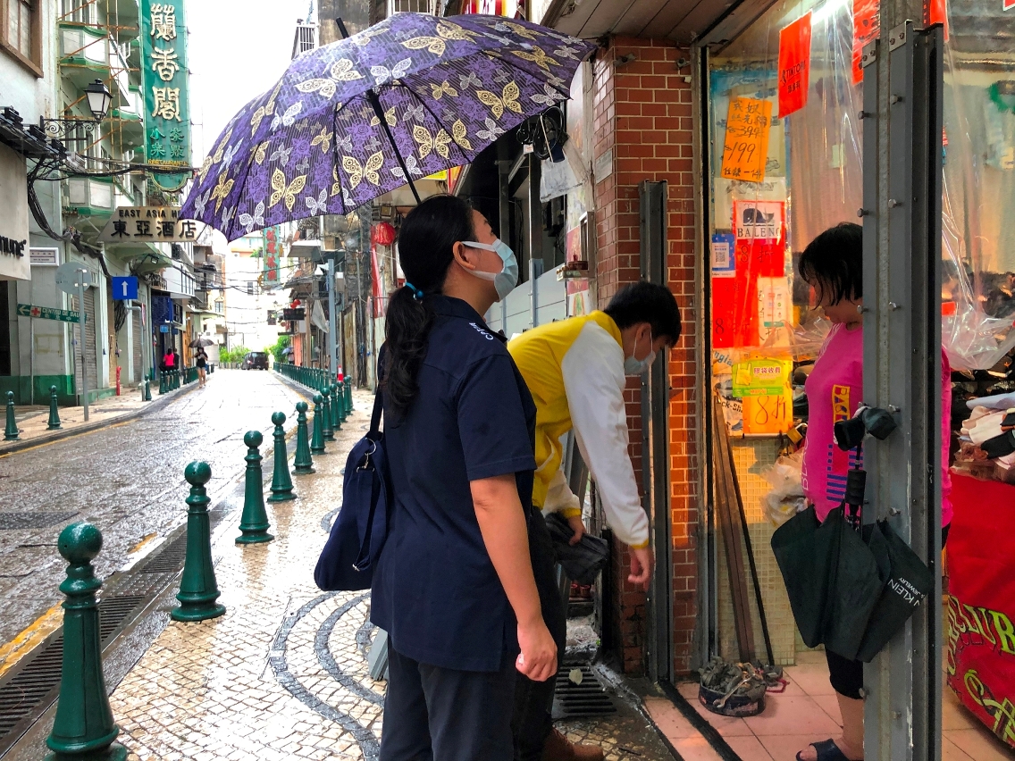 经济局及生产力暨科技转移中心人员昨(18)日曾到内港一带商户派发宣传单张,提醒商户及早做好防风防洪防浸准备及预防措施,有备无患,以免造成货物及设备损失。