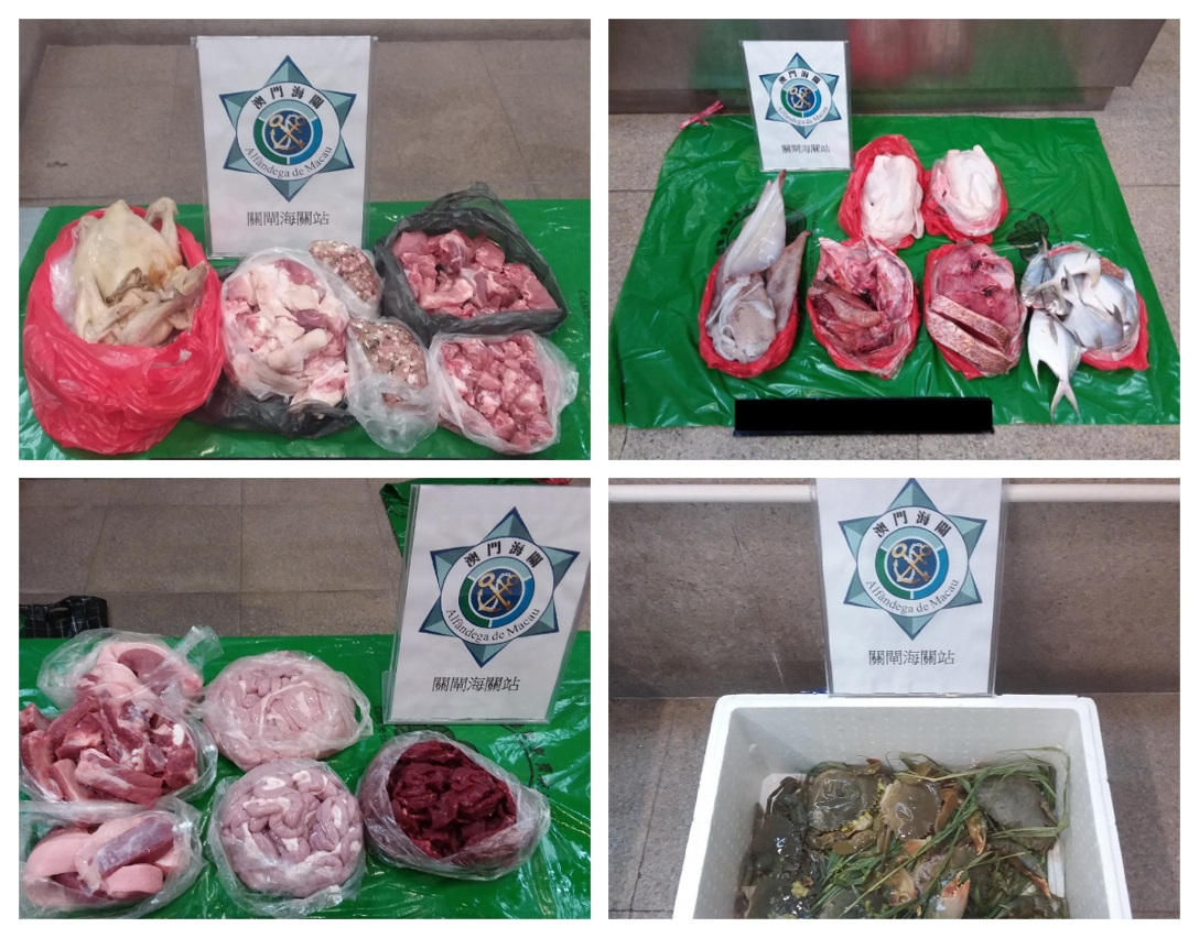 本月30日早上,关闸口岸海关人员截查1名持通行证的女子,发现该名女子所携带的手提袋内有大量未经检疫食材,经点算合共为25公斤鸡内脏。当日下午同一口岸,海关人员亦于1名女性本澳居民手提行李中查获19公斤鱼肉香肠制品。