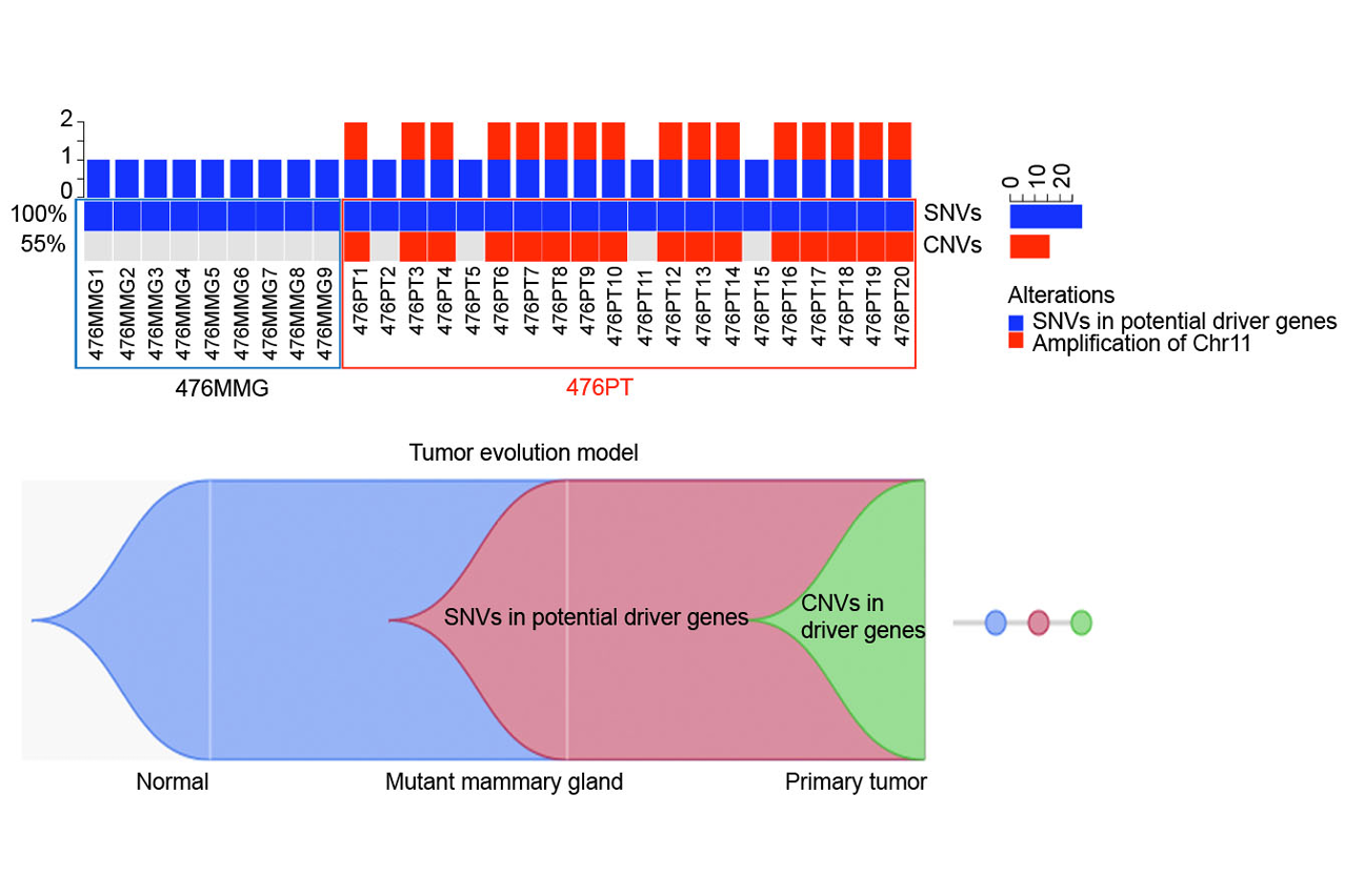 乳腺癌易感基因BRCA1突变是大约四分之一的人类家族性遗传乳腺癌的起因,带有BRCA1基因遗传性突变的女性在其一生中患乳腺癌的风险高达40-80%。说到癌症,每个病人,甚至来源同一个病人的不同肿瘤的驱动事件都有可能是不一样的,这需要进一步的研究阐明。目前BRCA1缺陷的乳腺癌的起始,以及其怎样从早期的癌变前阶段一步步恶变、进化、发展、转移的生物学机制和原理尚不完全清楚。近年来,单细胞全外显子测序技术已经成为了一个强有力的工具去破译肿瘤的瘤内异质性,并鉴定癌症的驱动因子。但是,目前同时分析来自同一个细胞的单核甘酸突变和拷贝数变异仍极具挑战性。