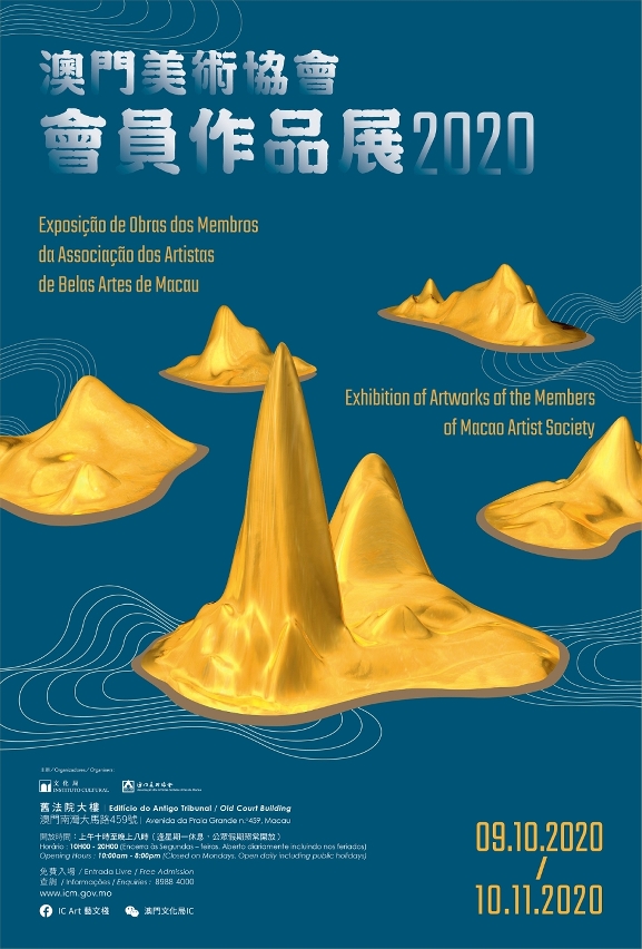 “澳门美术协会会员作品展2020”由本年10月9日至11月10日在南湾旧法院大楼地下展览厅(澳门南湾大马路459号)展出,免费入场。开放时间为每日上午10时至晚上8时,逢星期一休馆,公众假期照常开放。如欲查询展览详情,可浏览文化局网站www.icm.gov.mo或于办公时间致电8988 4000。