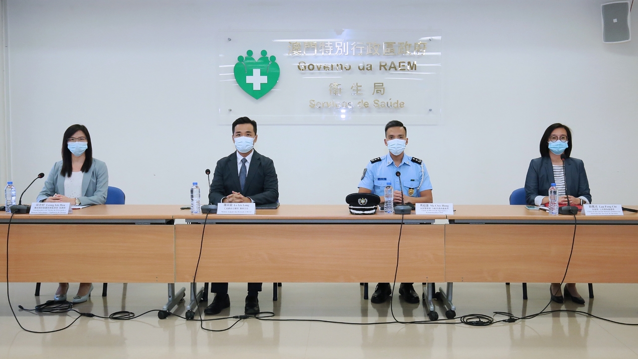 新型冠状病毒感染应变协调中心(下称应变协调中心)于今(12)日举行例行记者会,仁伯爵综合医院罗奕龙医务主任、治安警察局行动及通讯处马超雄处长、旅游局公共关系处刘凤池处长、疾病预防控制中心传染病防制暨疾病监测部梁亦好协调员共同会见传媒。