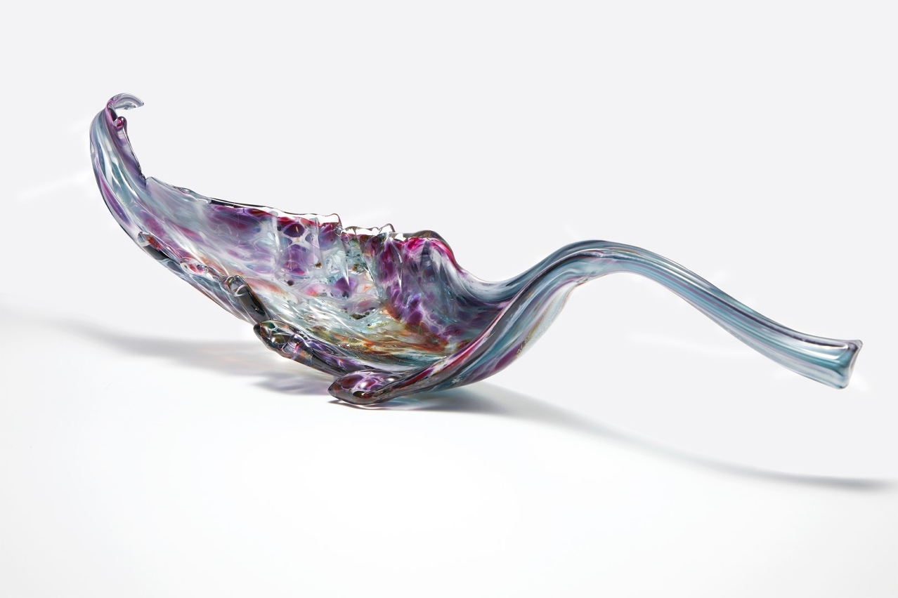 孟舒的个人艺术创作领域涵盖了陶瓷、玻璃等综合材料的当代雕塑及公共艺术。近年来,她全心投入玻璃艺术创作研究之中。孟舒的玻璃艺术作品是写意性的雕塑,充满着诗意自然主义的审美趣味且蕴含科学哲思。她运用玻璃艺术进行“心灵”的创作,思考科学哲学和艺术哲学之间的深层联系,透过玻璃特殊的材质语言特性表达天地常理,关注人的境遇。此次展出的不同主题系列的玻璃艺术作品,共同体现着孟舒对自然、对宇宙、对人生的独特理解。