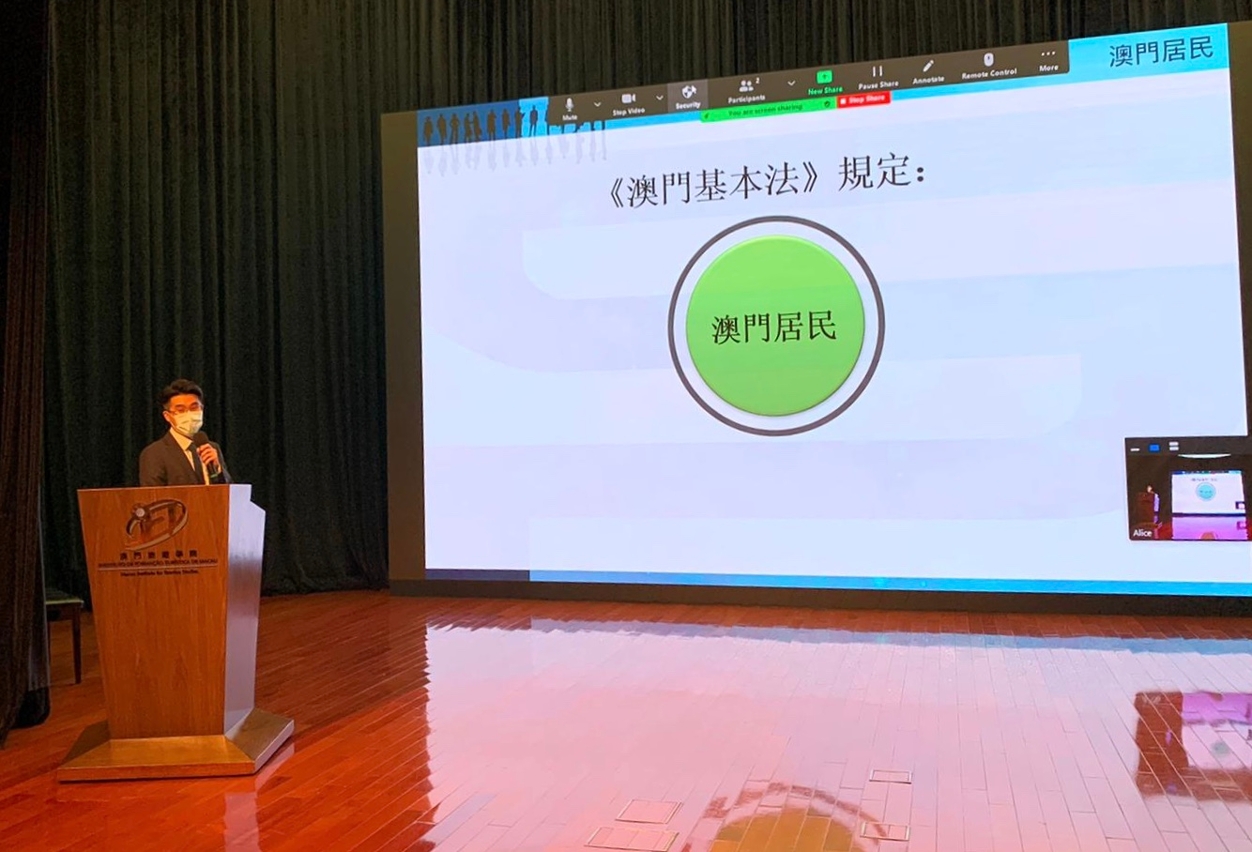 为了让澳门旅游学院学生了解《澳门基本法》中澳门居民的基本权利和义务、国籍法在澳门特别行政区的适用、以及加强澳门旅游学院学生对我国领事保护及领事服务的认识,学院在身份证明局的安排下,于10月15日邀请了中华人民共和国外交部驻澳门特别行政区特派员公署领事部李一君副主任及身份证明局身份证处黄子麟处长为学生作了有关「澳门居民的基本权利与义务、国籍法、以及领事保护与协助」的专题讲座,共约有100名学生参加。