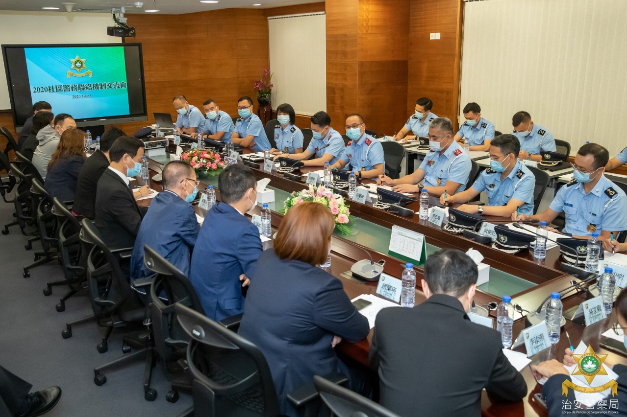 10月23日下午,治安警察局在出入境事务大楼举行「2020社区警务联络机制」交流会,会议由治安警察局吴锦华局长主持,多位社团、坊会领导及代表出席并就社区治安、警民合作等议题作交流。