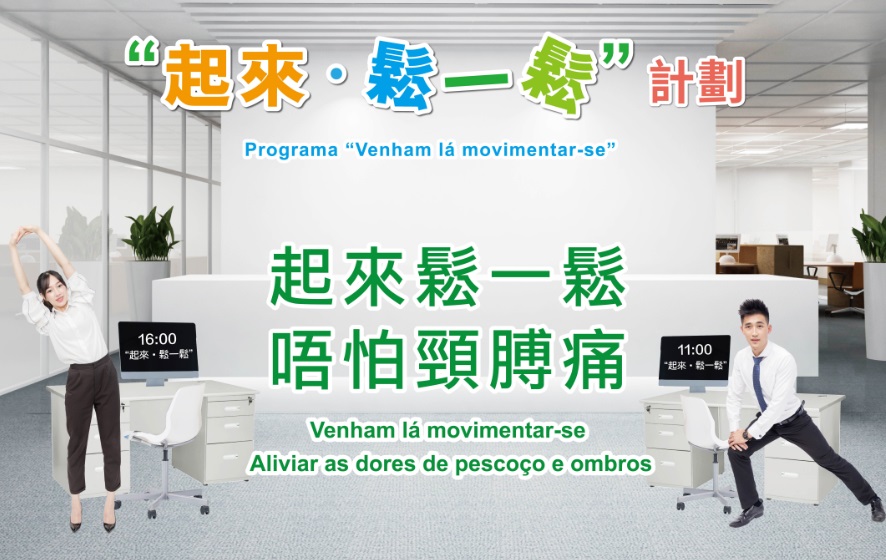 今年,受新型冠状病毒肺炎大流行的考验,居民强烈意识到拥有健康的身体是预防疾病的基石。有见及此,卫生局呼吁居民实践规律运动的健康生活,并倡议社会各界共同展开“起来‧松一松”计划,鼓励所有单位设立规律工间操政策,给员工提供一个支持运动的工作环境,助其养成规律运动的习惯,促使本澳居民健康,携手共建健康澳门社区。如需了解计划详情,可浏览网页https://www.ssm.gov.mo/apps1/healthymacao2019/ch.aspx#clg18083;或致电85041479