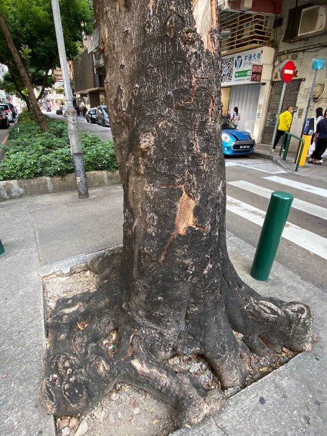 早前市政署树木管护人员为城市行道树进行养护期间,发现位于俾利喇街与飞能便度街交界的一株南洋楹树冠的粗枝枯萎量增多,树干和树基的表皮持续出现异常的开裂,更有多处已露出木质部。经技术人员使用树木仪器检查及比对该树木的表征,显示该树干和基部约有二分之一范围活性及整体生长呈下降趋势。市政署将持跟进该树状况,并采取养护措施,希望树木能恢复生机。