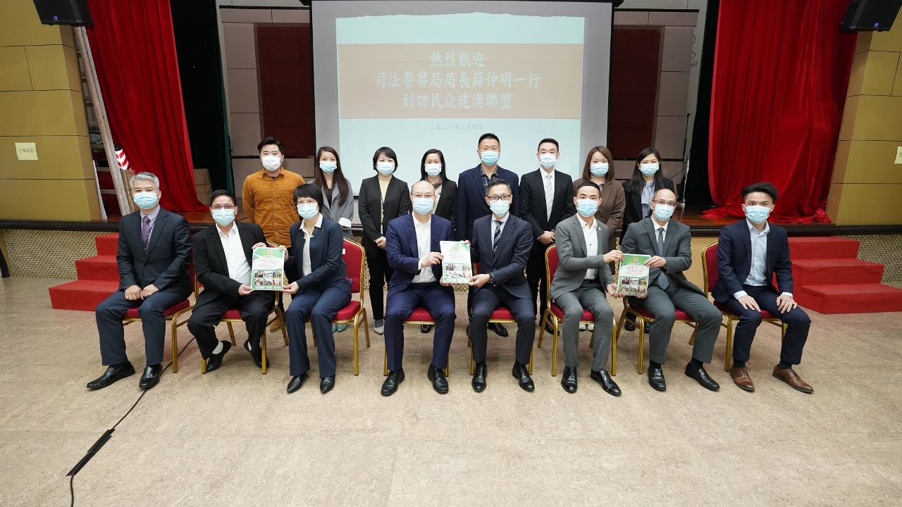 2月2日至8日,司警局局长薛仲明、两位副局长杜淑森及陈坚雄,率领多名主管人员分别拜访了澳门街坊会联合总会、澳门工会联合总会、澳门妇女联合总会、民众建澳联盟、澳门物业管理业商会、澳门归侨总会、澳门不动产管理专业技术人员协会、澳门中华教育会、澳门中华新青年协会及澳门中华学生联合总会等社团、教育及青年团体,与街总会长吴小丽、工联理事长李从正、妇联理事长林婉妹、民建联主席施家伦、物管商会永远会长及归侨总会会长刘艺良、不动产管协会长杨永泰、中华教育会理事长郑洪光、新青协理事长杨文远及学联理事长杨炜轩,以及一众代表进行座谈交流,共商深化警民合作,防范罪案发生。