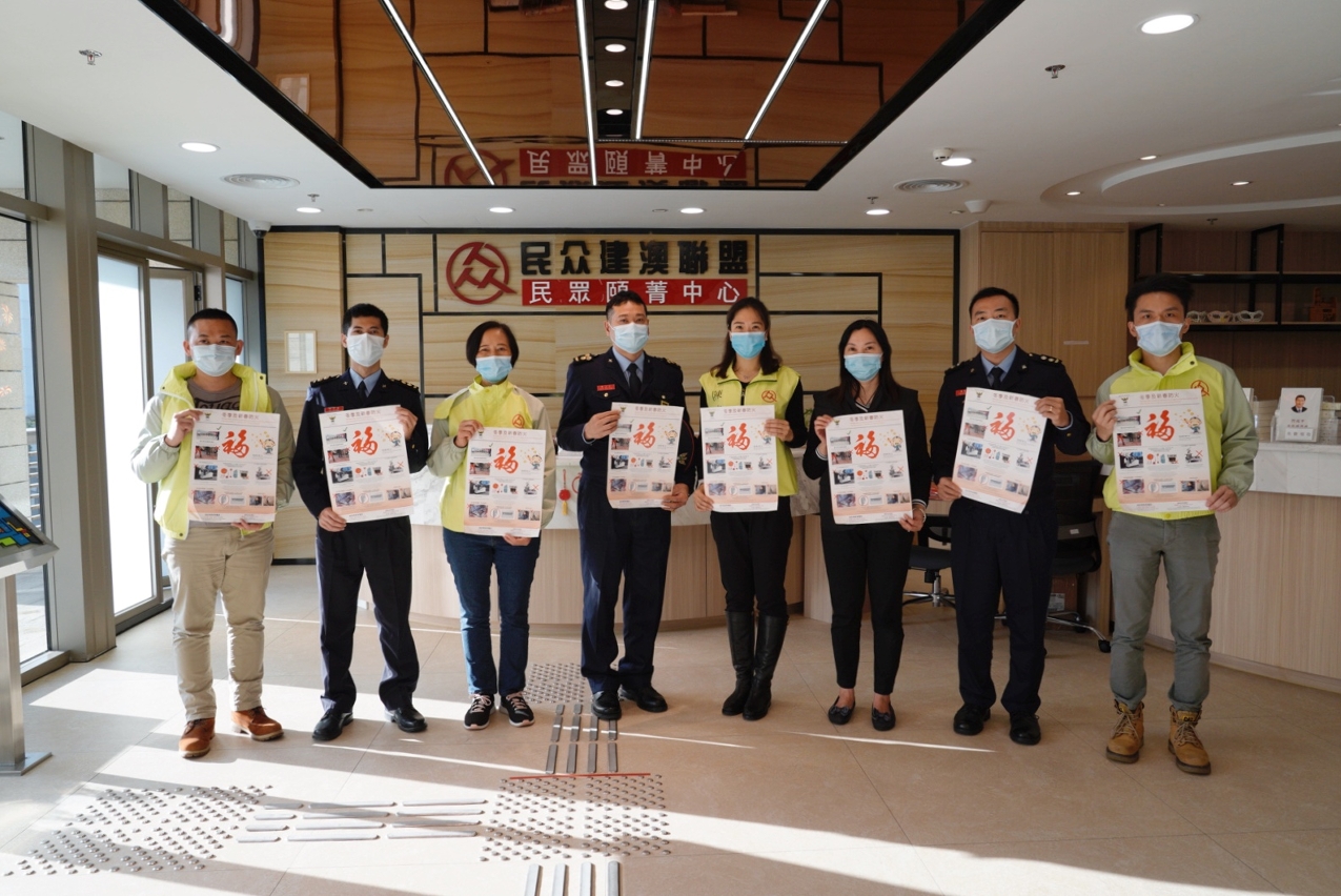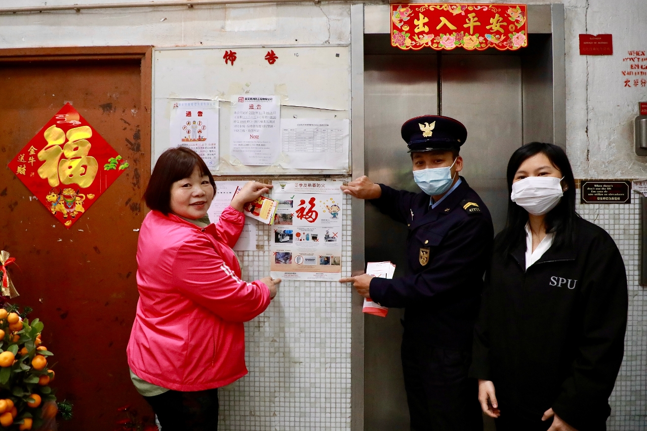 于农历新年前,消防局联同警察总局拜访“青洲坊众互助会”,以及派出官员拜访“氹仔民众颐菁中心”,并为其会员举办燃料安全知识讲座和防火讲座,提升他们的安全知识和警觉性,其后本局官员与上述团体负责人进行座谈,以听取及收集有关该区消防安全的意见,瞭解社区火灾隐患,双方并就农历新年的防火工作进行交流。活动中消防局联同警察总局、团体负责人以及各社区消防安全主任到区内一带派发相关宣传品,沿途向居民及商铺宣传农历新年期间的防火注意事项,重点提醒大厦管理人员加强节日期间大厦的安全巡查,包括:确保消防设备运作正常、防烟门保持常关及切勿阻塞走火通道等情况,以保障大厦有良好的消防安全环境。