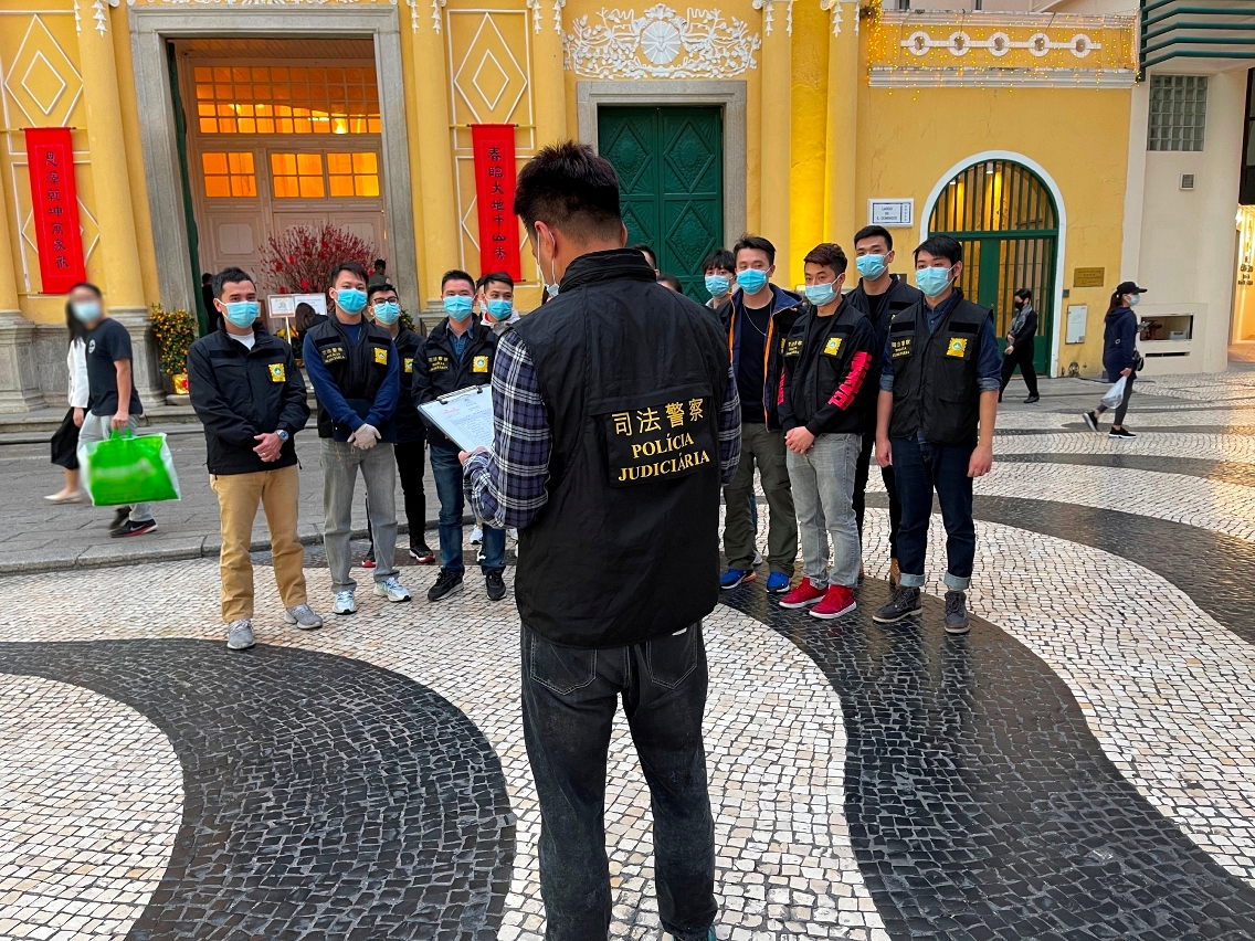 为持续净化社区治安,在警察总局统筹下,司法警察局持续进行“冬防行动2021”反罪恶巡查。于2021年2月9日下午5时至晚上7时,共派出35名刑事侦查人员前往本澳中区、下环区和北区巴士站以及附近一带进行巡查。