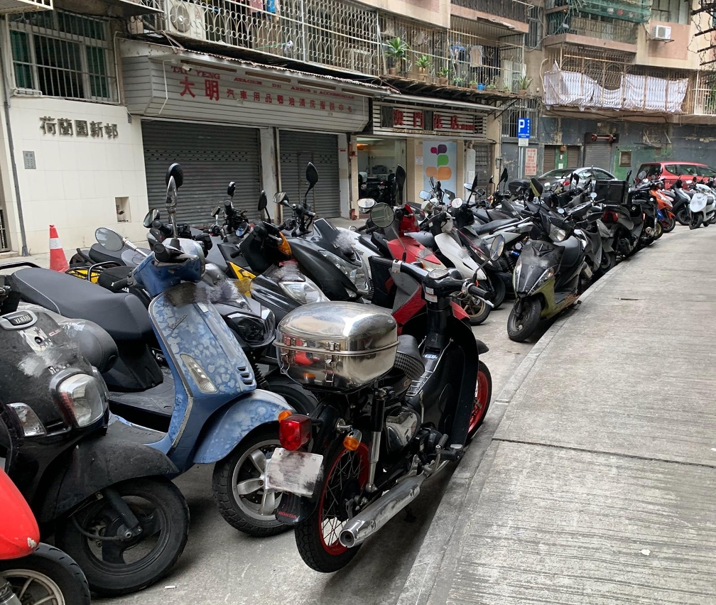 为理顺摩托车泊车秩序,改善道路通行环境,交通事务局于本月22日(周一)至28日(周日)分别于麻子街及高甸玉街的摩托车泊车区增设式样12a的辅助标志,并翻新相关路面泊车标线,以引导及规范摩托车驾驶者以垂直并列方式停泊。