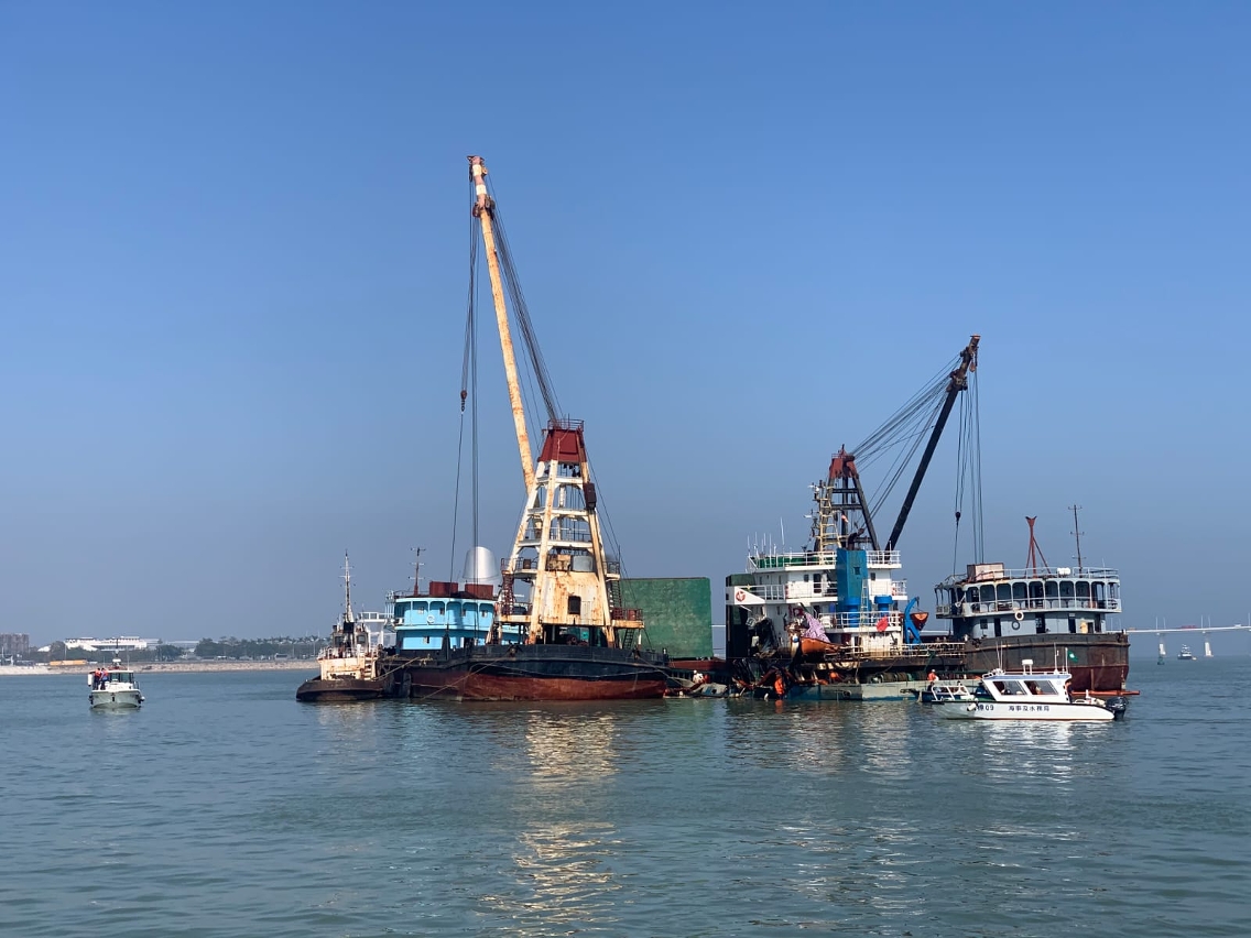 在局方人员登船检验,确定货船没有再次入水下沉的危险后,局方安排船只引领打捞船队及货船于昨日晚上沿澳门水道离开,前往内地维修。海事局今日派船只到事发现场跟进善后工作,包括清理现场的围油栏等防污设备。连日来的打捞过程中,局方均有派船只在现场戒备和协助,船舶交通管理中心亦透过无线电广播提醒往来船舶注意有关情况及指挥船舶绕过打捞作业位置;局方感谢珠海海事局协助提供船东资料,以及在打捞作业期间播放安全通告,提醒往来船只注意慢驶,确保通航安全。局方呼吁海事业界及航经船只必须严格遵守海事法规,在航行期间须小心驾驶和加强瞭望,共同维护海上交通秩序及航行安全。