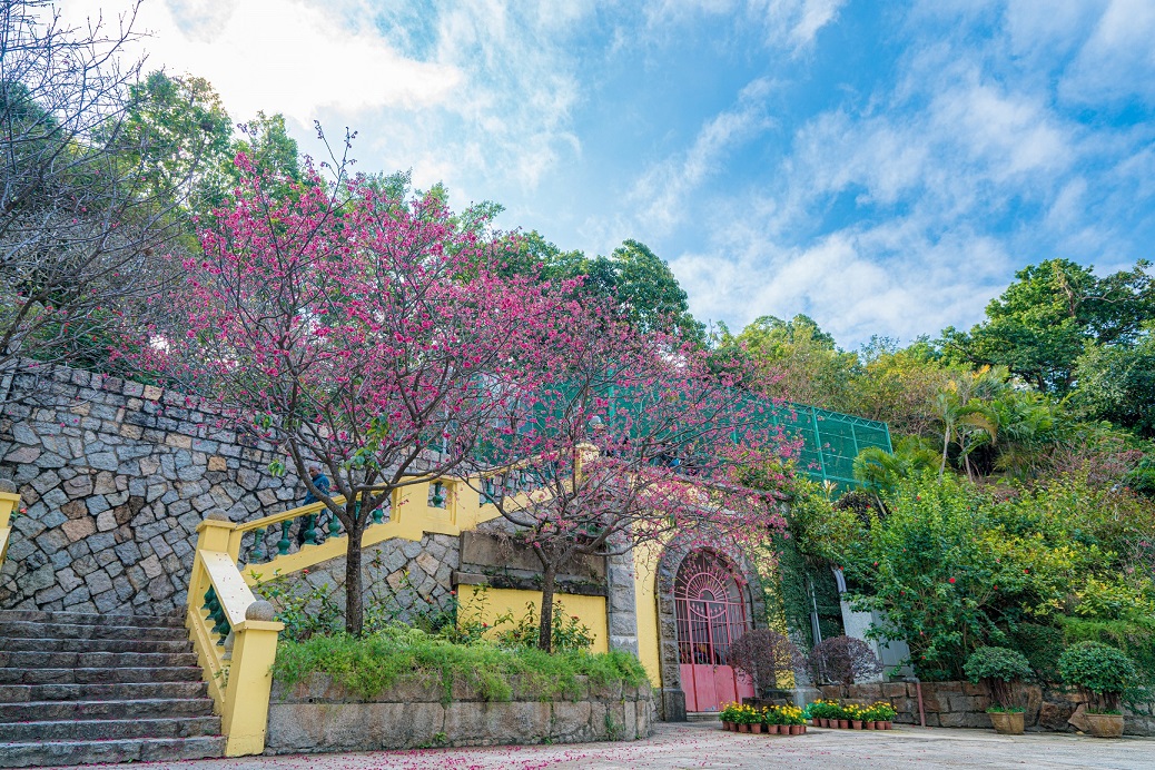 龙环葡韵种植的炮仗花一串一串高高挂,形成一个天然花幕,吸引游人驻足欣赏拍照;马交石炮台公园、纪念孙中山市政公园及水塘公园种植的桃花,花瓣小巧玲珑,露出淡黄的花蕊;卢廉若公园、二龙喉公园、白鸽巢公园及大炮台公园种植的茶花娇艳美丽,花形饱满,还不时飘来阵阵花香。此外,各绿化带种植的黄花风铃木也绚丽灿烂,令人赏心悦目。