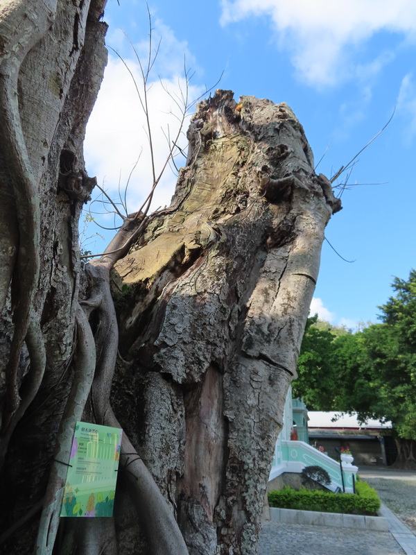 位于路环竹湾马路的假菩提古树,于二零一九年十月,经广州市林业和园林科学研究院古树专家评估为木质部裸露及已感染根腐病,当采用TRU树木雷达根系检测,结果也显示该树之东南侧地下极少深根分布,故为古树加设支撑架,并进行持续监察。今年四月,树木管护人员发现古树生长势突然下降,树冠叶片数量及面积较正常稀少,叶色较淡,健康明显不良。虽然近期已进行施药抢救,惟其中一主干已明显枯萎,考虑到枯枝位于人流位置及接近行车道,故计划于本月中下旬作出修剪,降低意外风险。