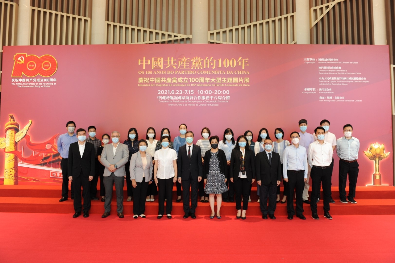 由国务院新闻办公室、澳门特别行政区政府、中央人民政府驻澳门特别行政区联络办公室主办,澳门基金会、南光(集团)有限公司承办的“中国共产党的100年——庆祝中国共产党成立100周年大型主题图片展”正于中国与葡语国家商贸合作服务平台综合体展出,社会各界踊跃报名观展。全国政协副主席何厚铧今日(7月6日)下午到场参观展览,他认为展览内容丰富,透过这298幅生动、珍贵的图片,不仅全面展现中国共产党波澜壮阔的百年奋斗历程,而且呈现了中国人民在中国共产党的领导下,实现从站起来、富起来到强起来的伟大飞跃。他鼓励广大的澳门市民,特别是年青一代要努力学习党史,要坚持和传承爱党、爱国、爱澳的信念;在中国共产党的领导下,携手为祖国的繁荣富强,为澳门的持续发展作出贡献。