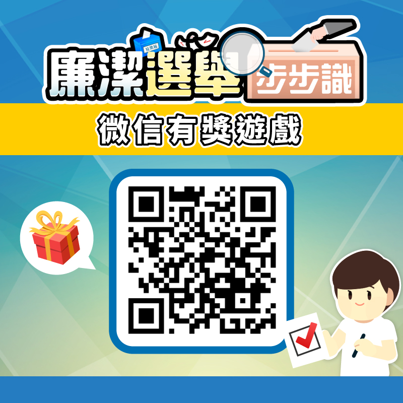 为配合9月12日立法会选举宣传工作,廉政公署将举办“廉洁选举步步识”微信有奖问答游戏,以加深市民对立法会选举法律制度的认识,共同维护立法会选举的廉洁、公平及公正。