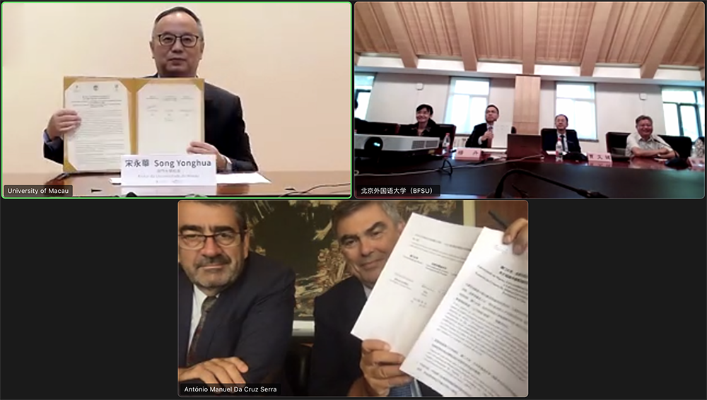 澳门大学、北京外国语大学和里斯本大学三方代表于线上签署《关于组建中国葡语教育高校联盟的协议》,象征联盟正式成立。联盟将致力提升中国在葡语教育领域的合作层次和水平。