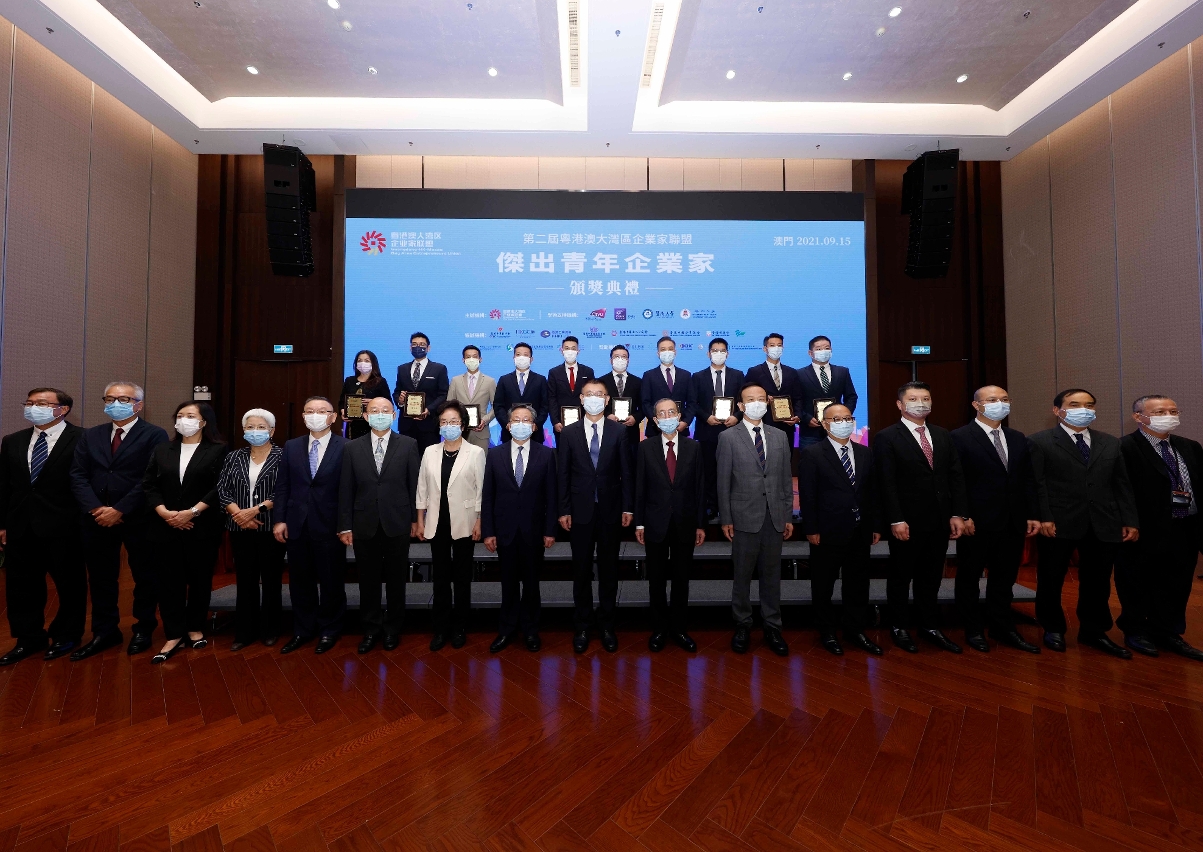 由粤港澳大湾区企业家联盟主办的第二届“粤港澳大湾区杰出青年企业家评选活动”颁奖典礼于香港、深圳及澳门三地以线上结合线下的方式同步举行,澳门会场于澳门大学举办。是次颁奖礼挑选出多个最具潜力及具有代表性的青年企业家,表彰他们为粤港澳大湾区的建设及繁荣作出的努力和贡献。