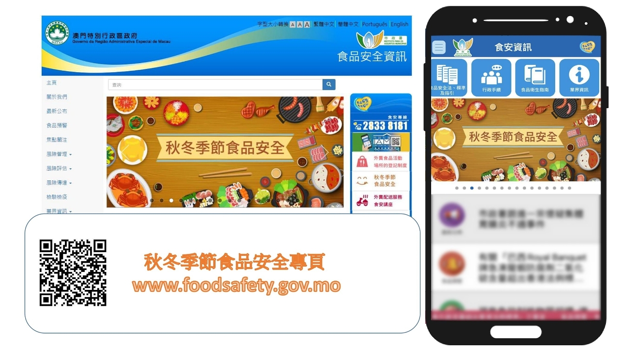 此外,市政署特别提醒市民,就近年新兴透过网购或代购外地销售的月饼等,应认清其可能存有的食品安全风险,选购时须了解清楚食品的货源、运输及贮存条件及卫生状况。市政署制作了一系列的宣导小册子,包括安心享用中秋月饼、安心烧烤、安心享用火锅等,提醒市民欢度佳节同时须注意的食品安全事项,并于食安资讯网站设置「秋冬季节食品安全」专页,市民可透过食安资讯网www.foodsafety.gov.mo或下载食安资讯手机应用程式「食安资讯App」,瞭解更多食安资讯。