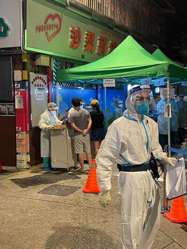 早前,市政署已完成上址大厦公用空间之大型清洁及消毒工作,并于防控区内搭建临时核酸采样站及前线协调站,以便卫生当局开展核酸筛查及后续工作。如对防疫措施有任何查询,可致电新型冠状病毒感染应变协调中心查询热线28700800。