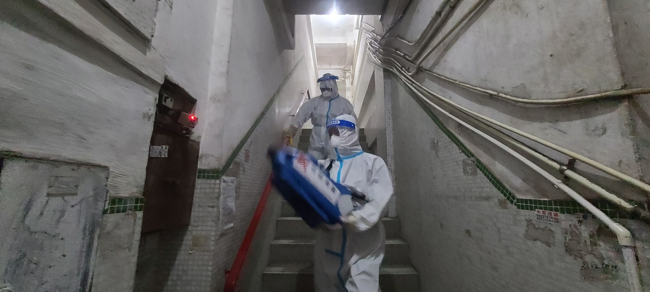 因应新型冠状病毒感染的最新情况并配合防控工作,市政署即时协调清洁专营公司及外判清洁加派人手,于9月25日凌晨对确诊病例居所周边街道、大厦公用部份等区域进行大型清洁及消毒工作,尽力减低传染病传播的条件。