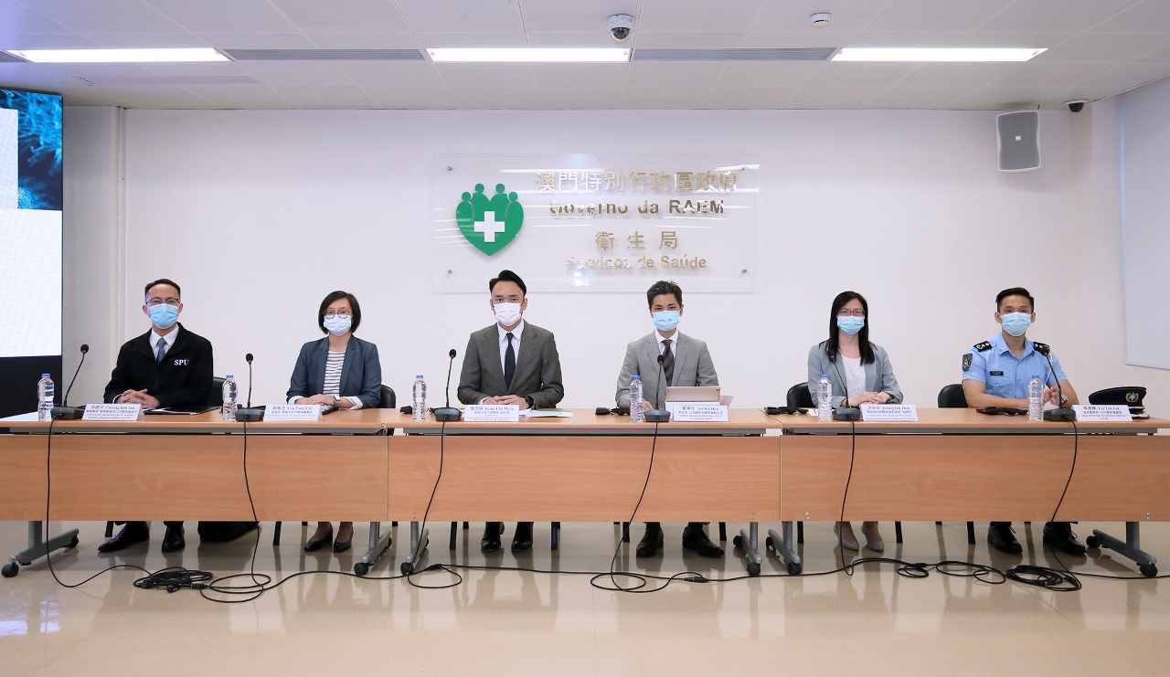 新型冠状病毒感染应变协调中心(下称应变协调中心)于今(3)日举行记者会,教育及青年发展局龚志明副局长、仁伯爵综合医院戴华浩医务主任、旅游局传播及对外关系厅刘凤池厅长、警察总局警务联络及公共关系处张健欣处长、治安警察局公共关系处李德辉处长及疾病预防控制中心传染病防制暨疾病监测部梁亦好协调员共同会见传媒。