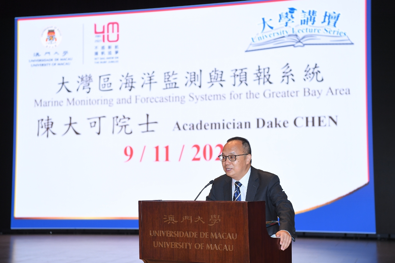 澳门大学今(9)日举行“澳门大学40周年校庆——大学讲坛"讲座,由中国科学院院士、南方海洋科学与工程广东省实验室(珠海)主任陈大可以“大湾区海洋监测与预报系统”为题发表演说,分析了大湾区海洋监测与预报系统的前沿发展,以及未来发展重点。