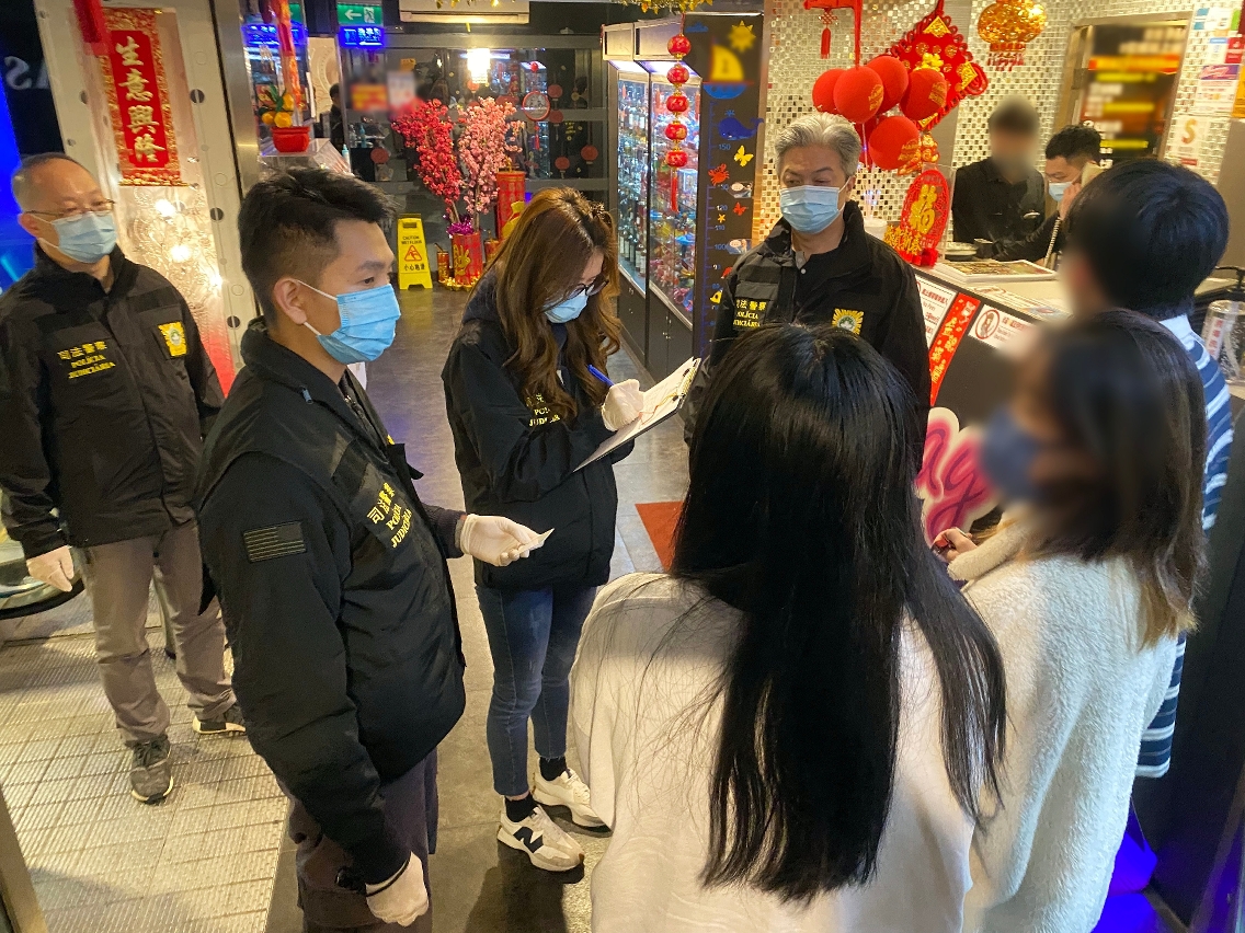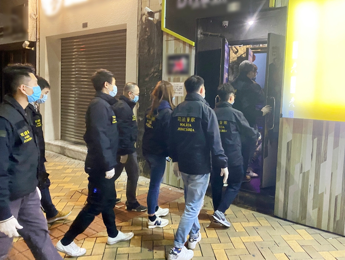 为持续净化社区治安,在警察总局统筹下,司法警察局进行“冬防行动 2022"反罪恶巡查。于2022年1月27日晚上10时至翌日凌晨1时,共派出38名刑事侦查人员前往本澳新口岸区、皇朝区及北区一带卡拉OK、酒吧和的士高进行巡查。