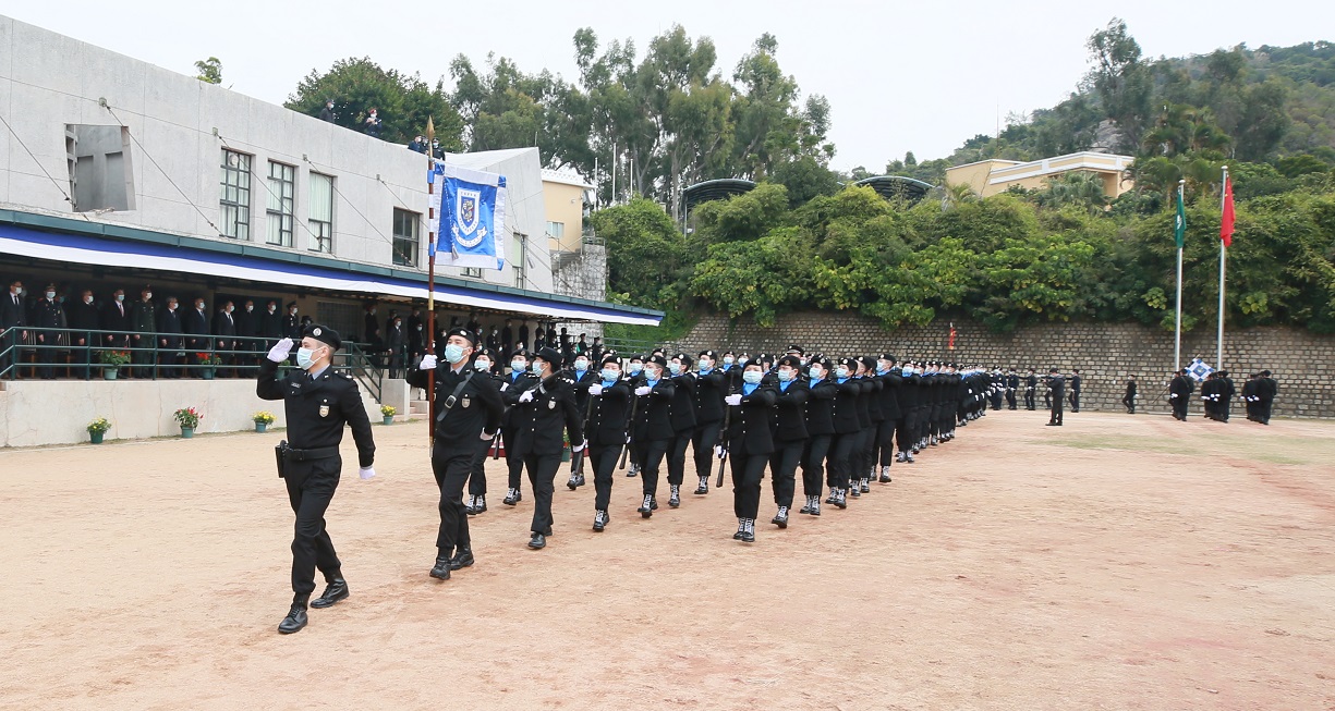 早上8时正,学校教职员工和学员在校内举行升旗仪式,全体人员面向旗杆肃立致敬,国旗及区旗在国歌声中徐徐升起。毕业典礼上,学员们精神焕发,昂首肃立,列队整齐,保安司司长及嘉宾们向学员颁发毕业证书及各奖项,包括最佳学员奖、基础训练阶段课程奖和体育奖等课程奖项,以肯定学员在课程中的不懈努力和优秀表现。