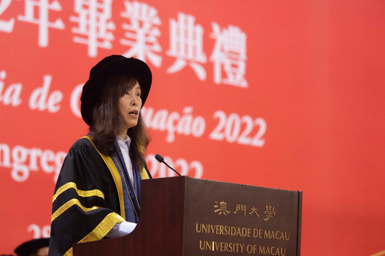 欧阳瑜致辞时表示,澳大作为本澳的公立大学,始终紧扣国家重大发展战略,全力配合特区政府的施政理念和方向。在为澳门培养爱国爱澳的优秀人才、加快科研创新和产学研合作、积极与内地开展联合培养项目、共建科研平台等方面取得了积极的成果,澳大的办学水平和国际声誉也得到进一步提升。2021 年,在建校40周年之际,澳大配合澳门特区“二五”规划,编制了大学的五年发展规划,作为未来发展的纲领和蓝图。特区政府期盼澳大能切实把规划落实到各项具体工作中,不断强化自身办学理念和特色,紧紧把握横琴粤澳深度合作区的发展机遇,共同建设粤港澳大湾区,透过区域合作提升人才培养和产学研项目的水平。