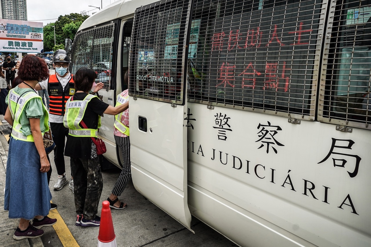 是次演习模拟因受台风侵袭并预计引发风暴潮,行政长官依法宣布本澳进入“即时预防状态”,民防架构按指示启动疏散撤离计划,司警局危机应变指挥中心根据撤离方案,指挥及协调各撤离小队前往所负责的区域执行撤离任务。