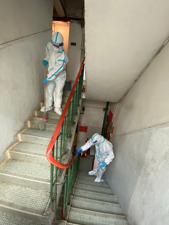 因应新型冠状病毒感染的最新情况并配合防控工作,市政署即时协调清洁专营公司及外判清洁加派人手,今(十九日)已对多个确诊病例居所及周边街道、大厦公用部份等区域进行大型清洁及消毒工作,尽力减低传染病传播的条件。