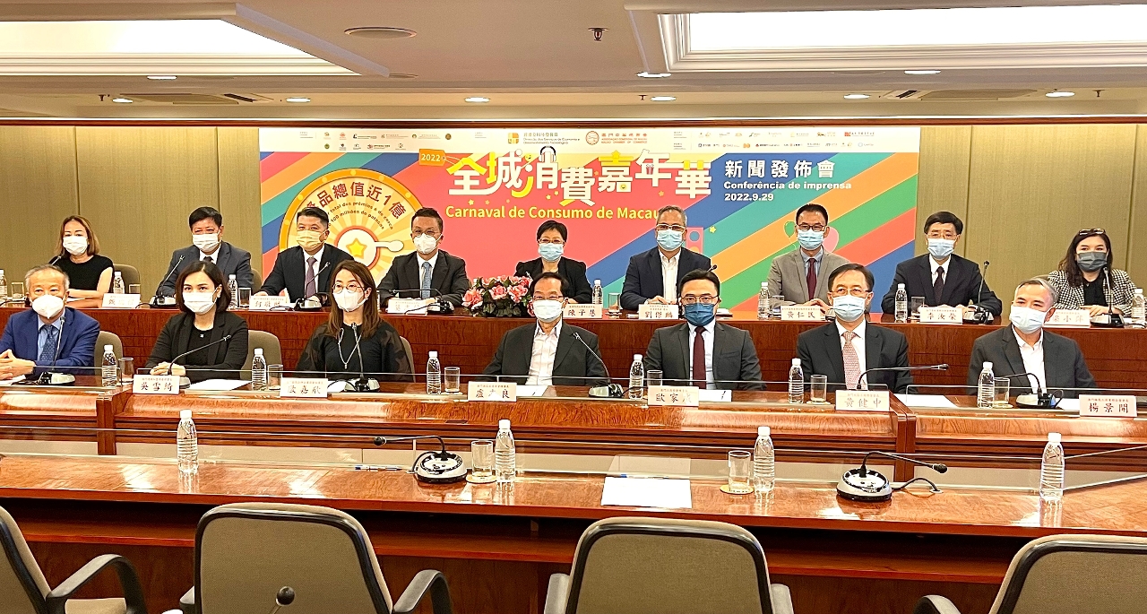 特区政府为应对疫情推出的“2022年百亿抗疫援助措施”正陆续落实。其中,经济及科技发展局与澳门中华总商会将合办大型促进消费活动“2022年全城消费嘉年华",并于今(29)日在澳门中华总商会大厦五楼举行新闻发布会,介绍活动详情。