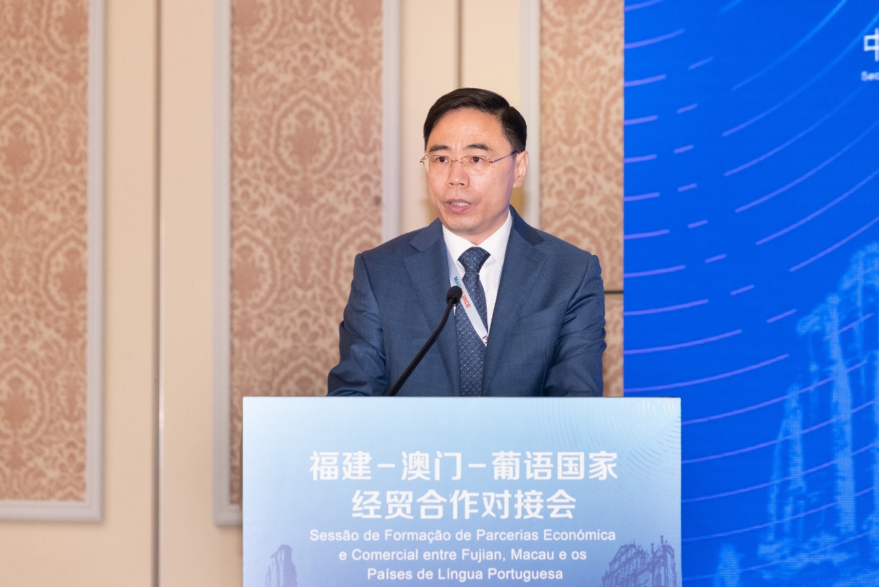 10月20日下午,由福建省商务厅、中葡论坛(澳门)常设秘书处及澳门贸易投资促进局共同主办的福建—澳门·葡语国家经贸合作对接会于澳门威尼斯人酒店举行。福建省商务厅厅长黄河明、中葡论坛常设秘书处秘书长季先峥、澳门特区政府贸促局黄伟伦执行委员在会上致辞。常设秘书处联络办公室主任米格尔在对接会推介葡语国家。