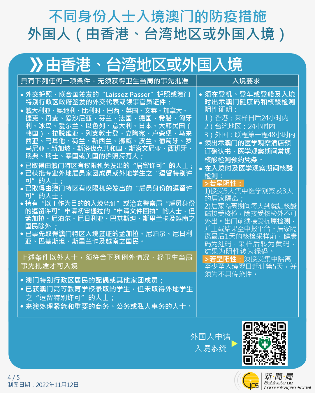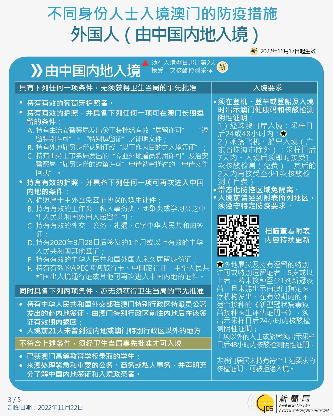 【图文包】最新入境澳门的防疫措施 (2022/11/22)