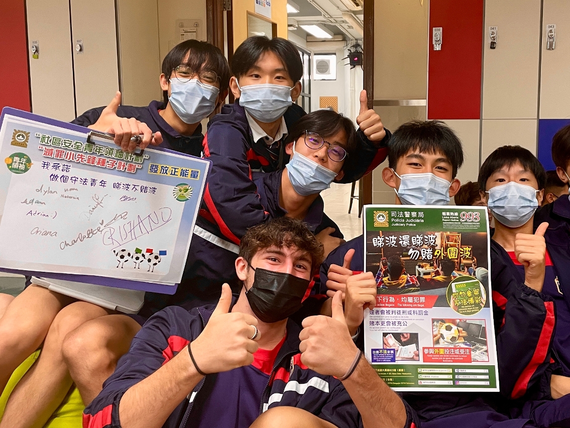 司警局还透过“学校安全联络网”恒常通讯,吁请校方将正确欣赏足球赛事、切勿参与非法赌博的讯息传达予家长,期望家长以身作则,为子女树立良好榜样。同时,司警局关注少年组人员亦前往校园向学生宣讲防罪拒赌资讯,并广泛邀请教职员及学生在“做个守法青年,睇波不赌波”签名板上署名合照;相关签名板也以电子方式发送给各间高等院校和中学以便校方推广,共同将“反外围赌波”的讯息由校园向社区辐射传播,促进警民合力,共建防赌屏障。