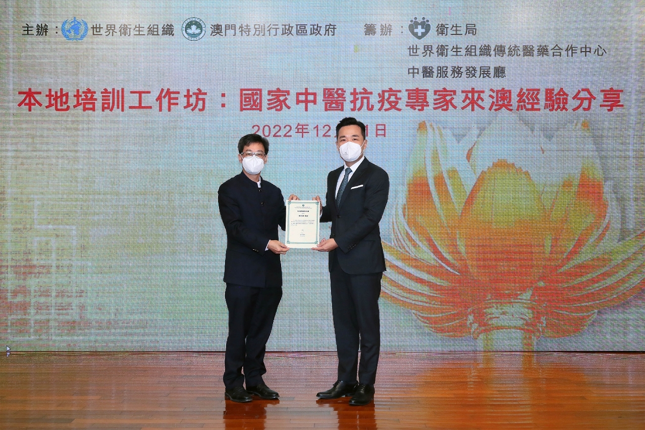 由澳门特区政府与世界卫生组织(下称世卫)共同主办的〝本地培训工作坊:国家中医抗疫专家来澳经验分享〞于日前举行,工作坊邀请到国家抗疫专家组成员—广东省中医院院长张忠德教授和重症医学科大科主任邹旭教授分享中医药抗疫经验并进行学术交流。