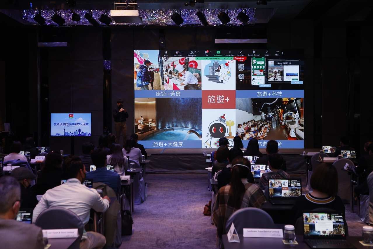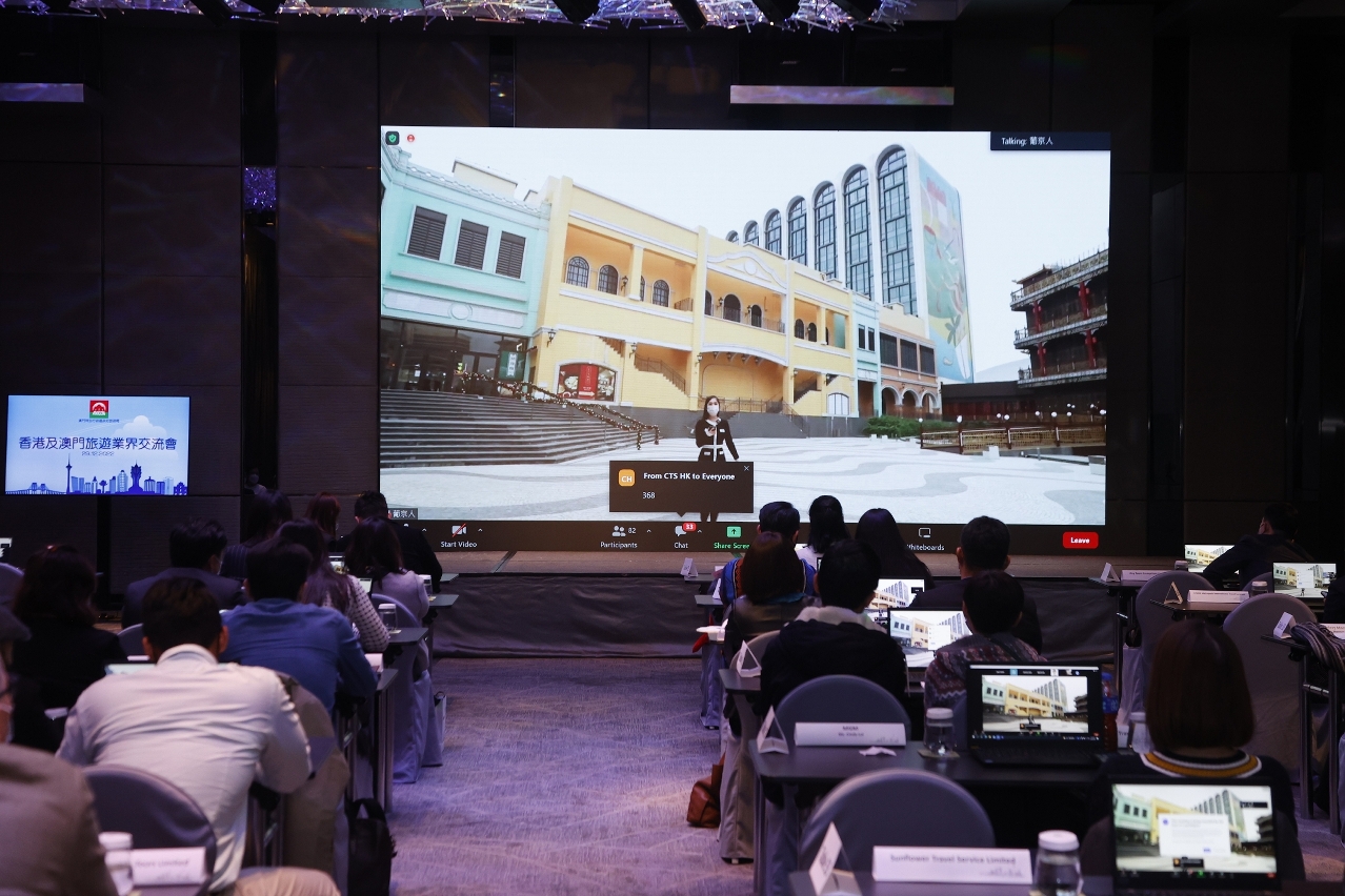 旅游局于今(29)日假香港尖沙咀唯港荟,举行香港及澳门旅游业界虚拟旅游暨交流会。随着澳门优化入境防疫措施,进一步放宽香港入境澳门限制,旅游局藉活动为香港旅行社更新澳门旅游资讯,同时为两地业界提供交流及业务对接机会,以吸引香港人来澳旅游,提振澳门旅游经济。