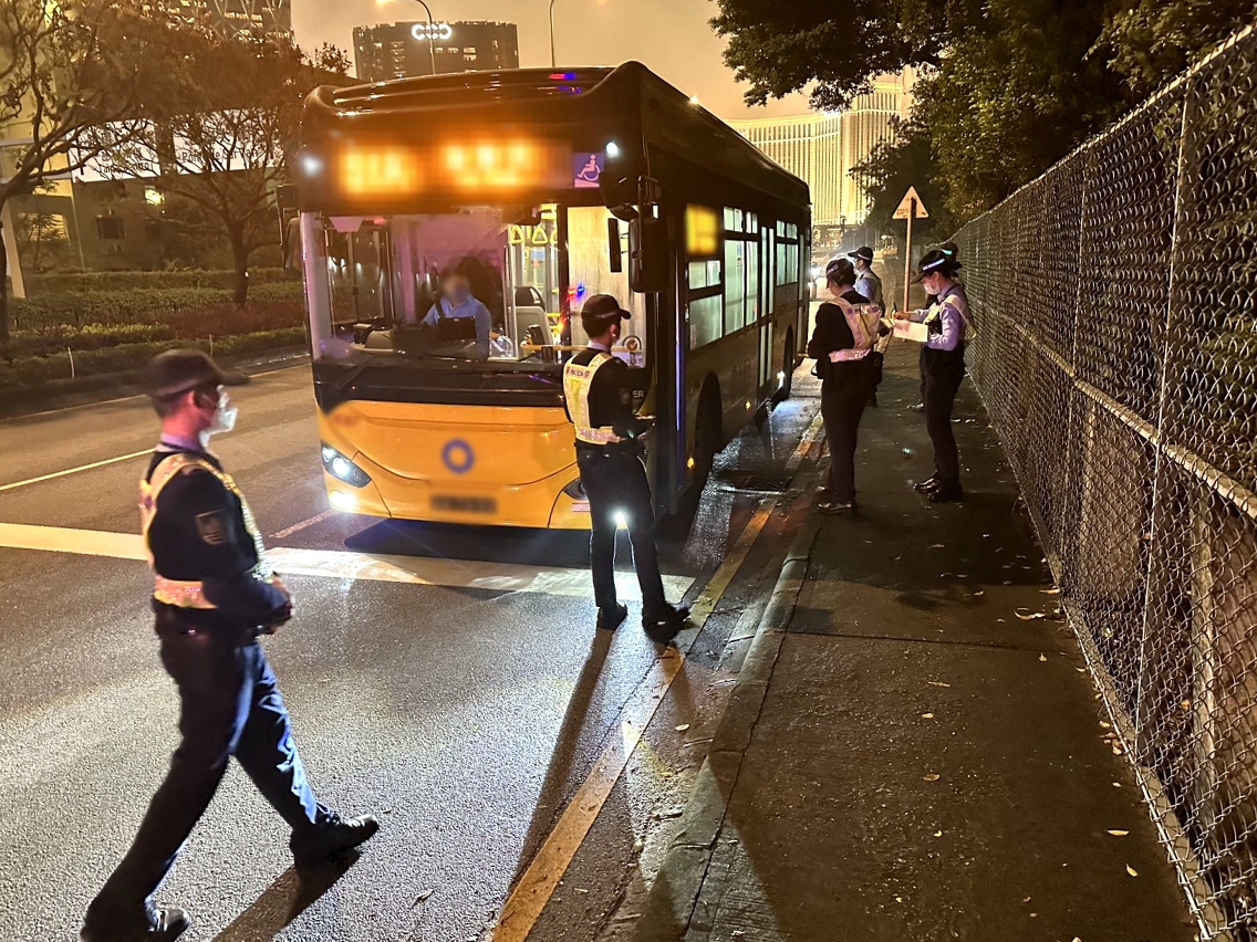 查车方面,共截查31辆车辆,截查共86人(43男43女),当中检控3宗违例及1宗违法行为。上述3宗违例分别涉及行驶时没有开启车灯和未能出示驾驶执照,而1宗违法行为则涉及1名女子涉嫌醉酒驾驶。
