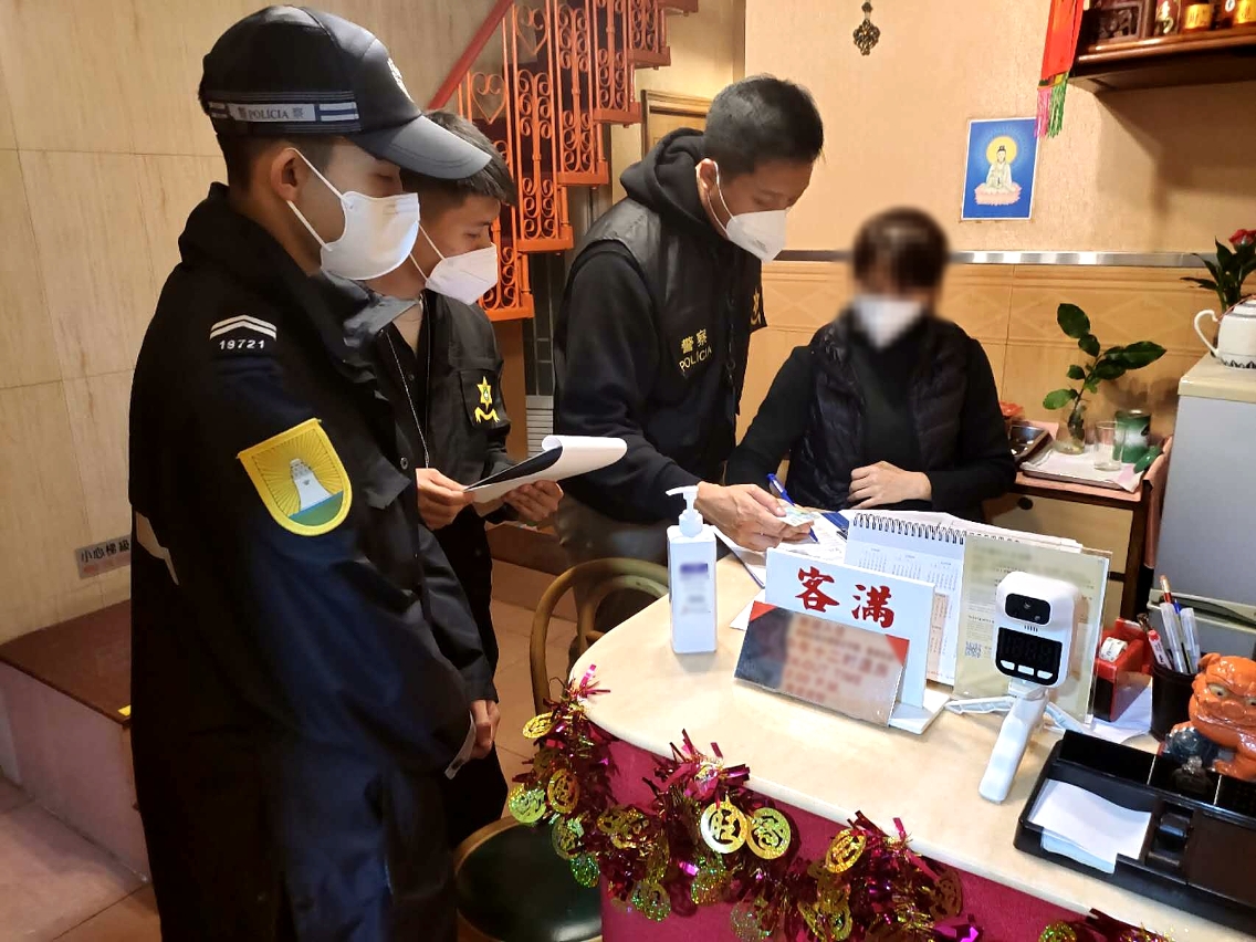 在警察总局统筹下,治安警察局于昨(13)日继续开展「冬防行动2023」,确保本澳在岁晚及春节期间的良好治安环境。治安警察局辖下澳门警务厅、海岛警务厅、交通厅及情报厅合共派出43名人员,分别在澳门各区巡查多间桌球室及宾馆,同时在各区进行查车行动,以预防及打击各种不法行为和犯罪活动。