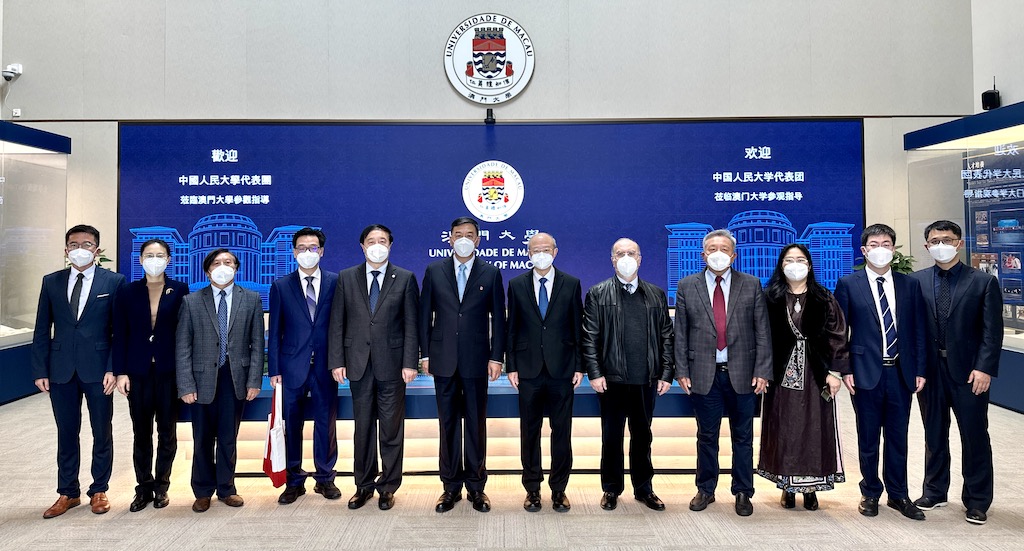 在澳门大学代校长许敬文及中国人民大学书记张东刚的见证下,澳门大学副校长马许愿及中国人民大学副校长杜鹏签署《澳门大学——中国人民大学教育和科学合作备忘录》。其后,两校进行了“国际文化交流学术联盟”及“世界人文社会科学高校联盟” 授牌仪式。在两校交流座谈会上,许敬文表示,中国人民大学一直是澳门大学重要的合作伙伴。两校自1996年建立合作关系以来,都在学生交换、学术交流、人才培养等方面保持着紧密的合作关系,尤其是在人文、社科、法学等领域。此次的合作将进一步深化两校交流,推进在联合人才培养及公共行政培训等方面合作,实现优势互补,互惠共赢。此外,中国人民大学代表团在许敬文的陪同下参观了澳门大学大学展馆和伍宜孙图书馆,代表团皆对澳门大学的建设与发展给予了高度的评价。