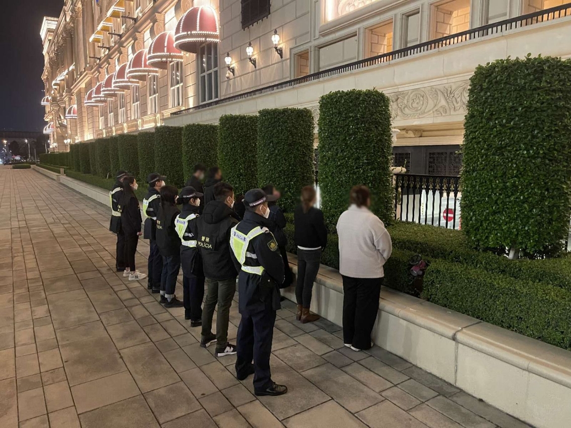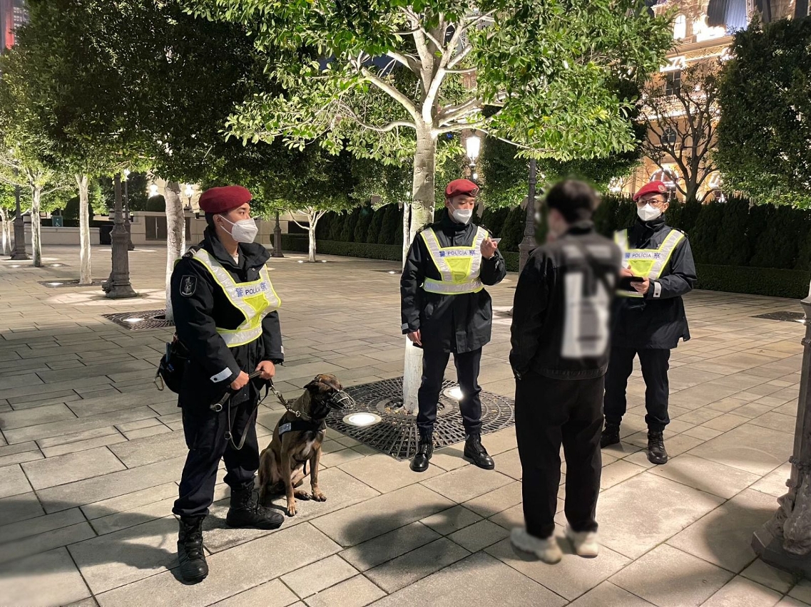在警察总局统筹下,治安警察局于昨(17)日继续开展「冬防行动2023」,确保本澳在岁晚及春节期间的良好治安环境。治安警察局辖下澳门警务厅、海岛警务厅、交通厅、情报厅及特警队联同警犬组合共派出93名人员,分别在澳门各区巡查多间宾馆,以及在路氹城金光大道娱乐场周边一带截查可疑人士,同时在各区进行查车行动,以预防及打击各种不法行为和犯罪活动。