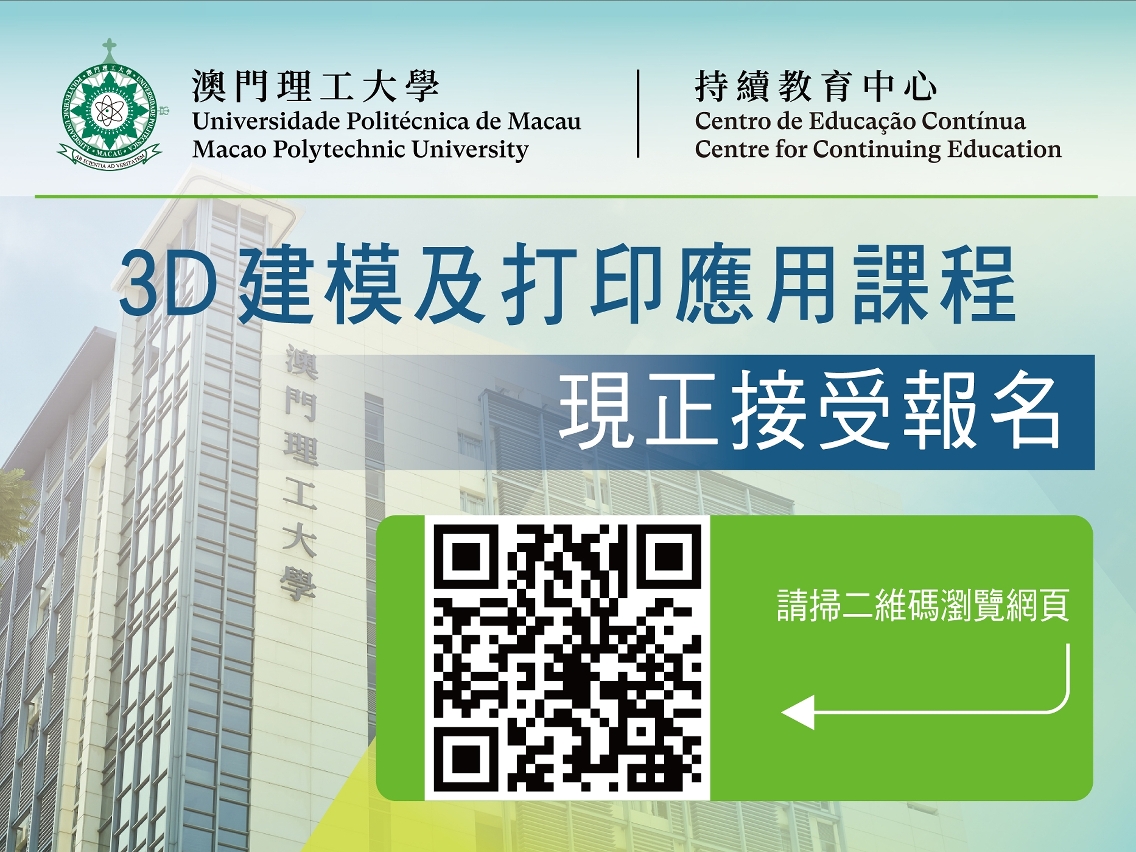 为配合市场对3D打印学习相关技术的需求,澳门理工大学持续教育中心即将开办“3D建模及打印应用”课程,内容包括认识3D建模至打印全过程的工作流程、介绍模型制作软件及应用、认识三维模型常用格式及获取模型方式、3DS MAX基础技术及各种操作指令、练习3D建模操作、3D打印机的设定与使用、模型优化与印后处理等。课程由设计企业创意总监任教,导师具设计硕士学位、多年工业产品设计经验、曾多次获国内外创意设计奖项,并于澳门理工大学艺术及设计学院设计学士学位课程兼职任教。课程现已接受报名,报名日期至2023年3月1日,额满即止。