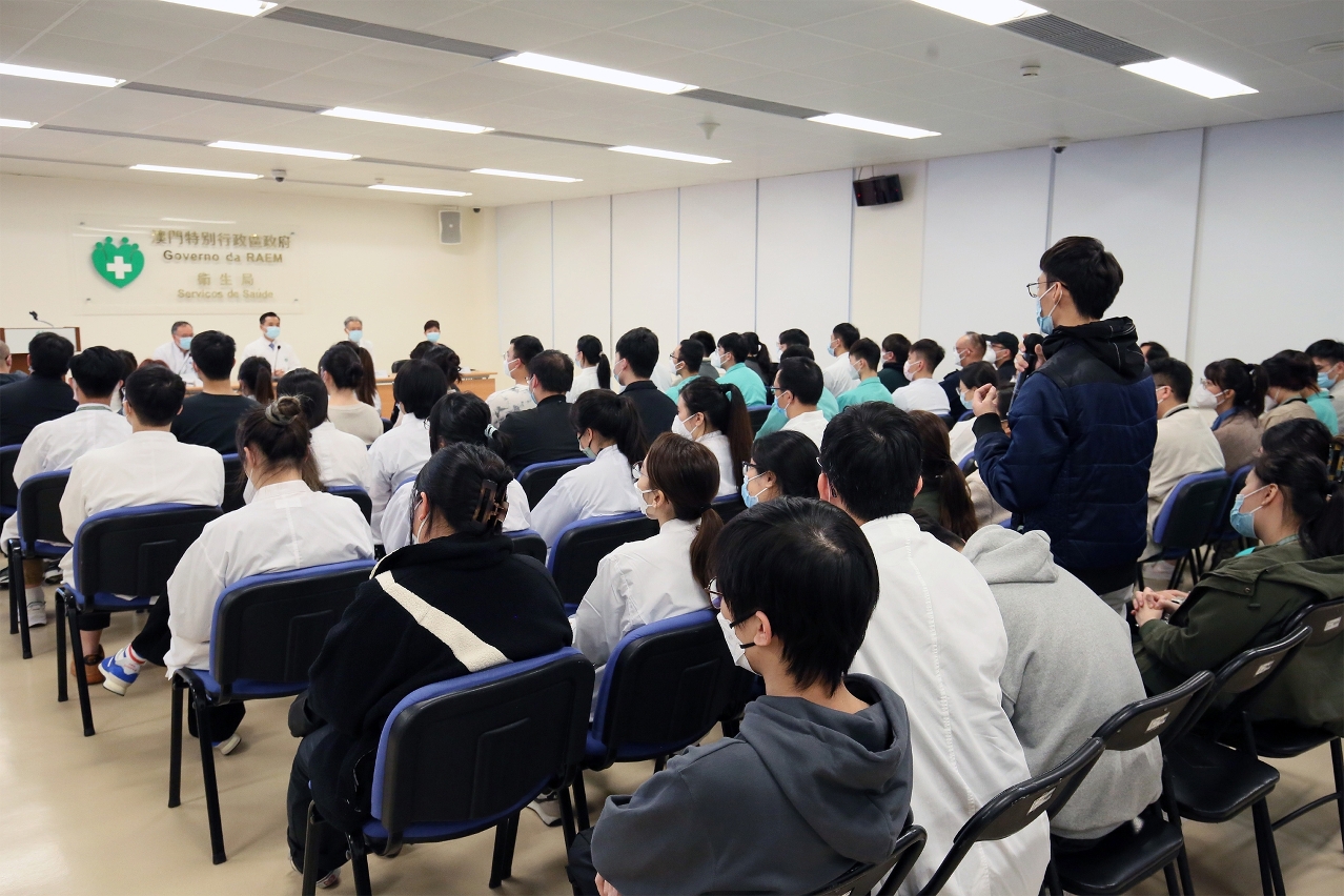 卫生局今(3)日举办了两场医疗专业实习人员交流会,听取实习人员的意见及分享学习心得。卫生局局长罗奕龙、副局长兼仁伯爵综合医院院长郭昌宇、医务主任李伟成和护士总监陈颖茜出席了是次交流会。