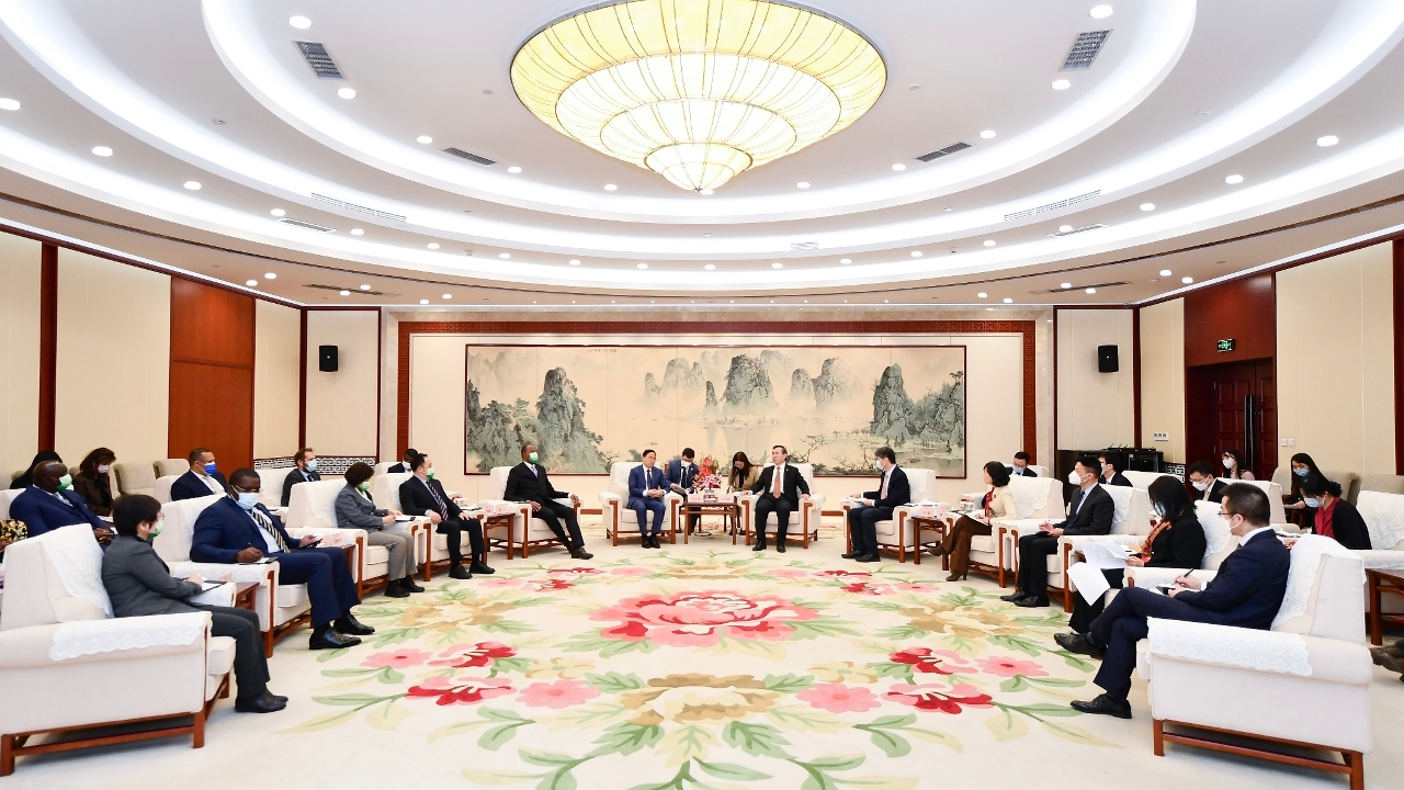 2月21日,中葡论坛(澳门)常设秘书处季先峥秘书长偕秘书处代表团拜访中国贸促会任鸿斌会长,就加强机构间合作、共同举办中葡经贸促进活动深入交流。