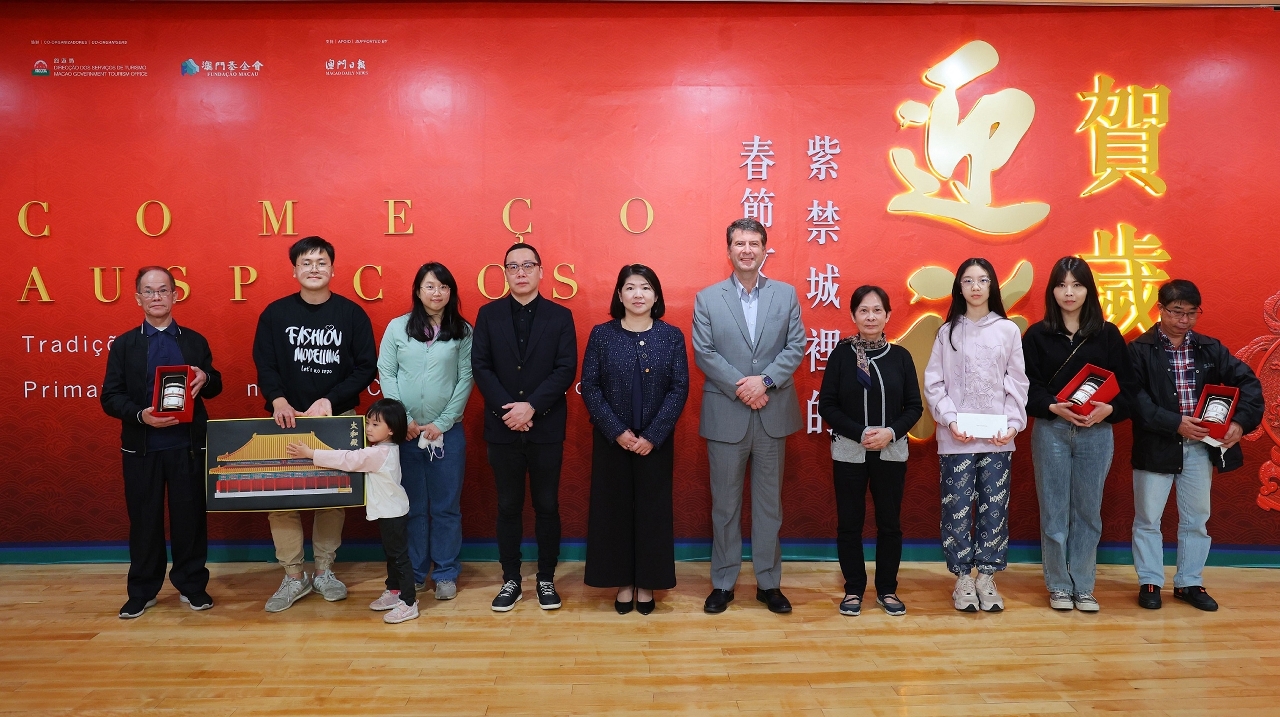 文化局辖下澳门艺术博物馆与故宫博物院合办之“贺岁迎祥──紫禁城里的春节文化”展已于周日(3月5日)圆满结束,广受观众好评。配合展览推出的网上游戏大奖赏亦于当日举行颁奖仪式,由文化局代局长张丽珊、《澳门日报》助理总编辑郑国伟、雅辰酒店集团澳门区营运副总裁兼澳门雅辰酒店总经理温诚睿(Rutger Verschuren)向得奖者颁发奖品。