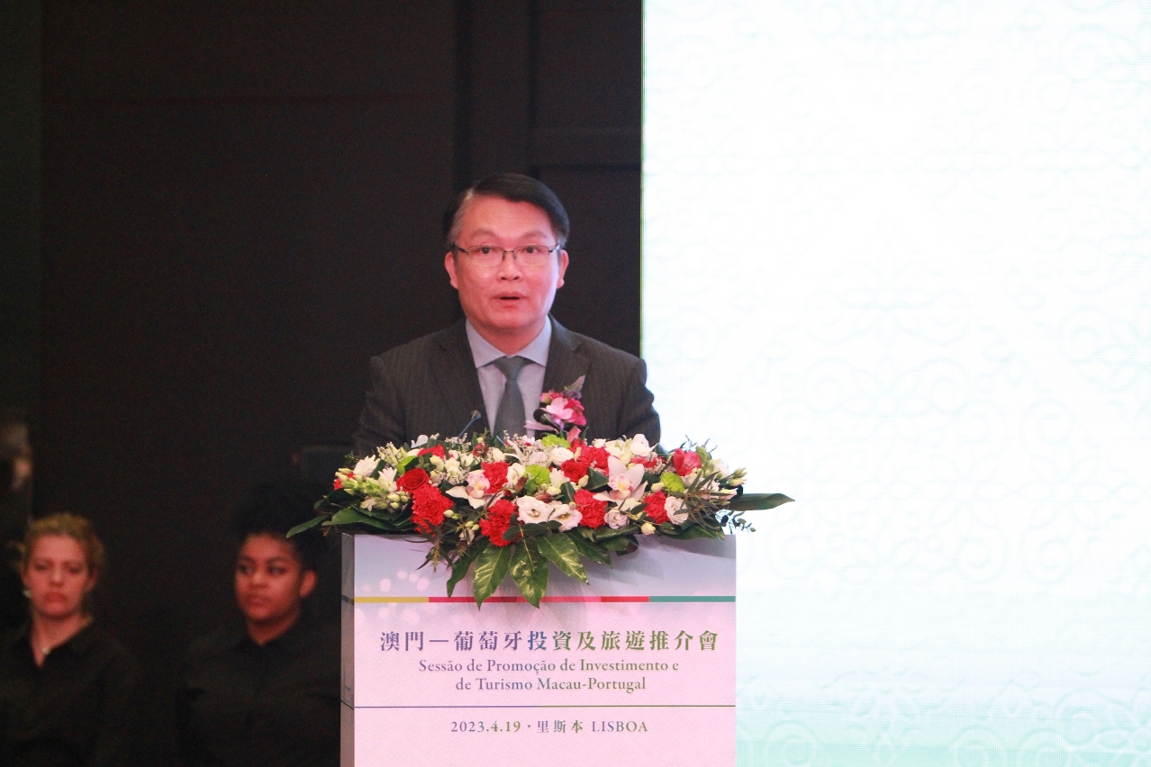作为特区政府访葡行程之专题经贸旅游推介活动,“澳门—葡萄牙投资及旅游推介会”在葡萄牙当地时间4月19日举行。澳门特别行政区行政长官贺一诚、中华人民共和国驻葡萄牙共和国大使赵本堂、澳门特别行政区政府经济财政司司长李伟农、运输工务司司长罗立文,横琴粤澳深度合作区执行委员会副主任聂新平、苏昆,澳门特别行政区政府旅游局局长文绮华、澳门贸易投资促进局主席余雨生等出席。