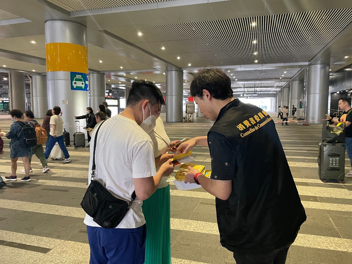 消委会积极透过不同渠道向访澳旅客推广“诚信店”,助力构建“诚信澳门”形象。配合内地“五.一”劳动节假期,消委会在关闸、青茂口岸以及港珠澳大桥口岸向访澳旅客派发《指南》及“消保易”宣传单张。