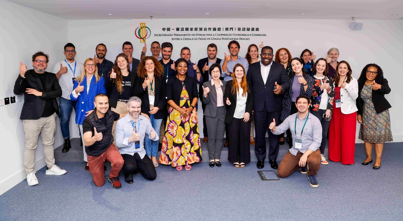5月12日,由经济及科技发展局组织葡语国家的科技企业、科学园及孵化器等科技创新业界代表近30人,到中国—葡语国家经贸合作论坛(澳门)常设秘书处座谈交流。常设秘书处联络办公室主任及圣多美和普林西比派驻代表施蒙格、辅助办公室莫苑梨主任、巴西派驻代表李嘉明、赤道几内亚派驻代表蒙天娜、莫桑比克派驻代表范诗雅及葡萄牙派驻代表顾美思等出席交流。
